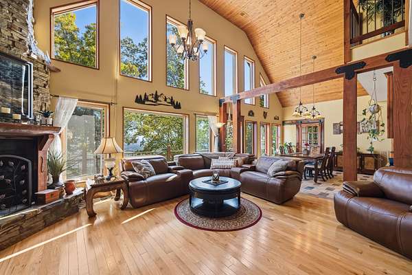 This stunning residence features 4 bedrooms, 4.5 baths, and nearly 3,800 sq. ft. of living space. Walls of windows showcase sweeping mountain and valley vistas, creating a seamless connection between indoors and out.