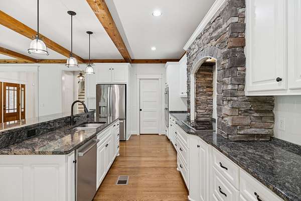 Set well off the road on a secluded lot, the home features open-concept living, generous entertaining areas, and panoramic views of a scenic 4-acre pond with deeded easement access. Whether you're relaxing on the back porch or watching the sunset over the water, this property offers a peaceful country lifestyle with the convenience of nearby town amenities.