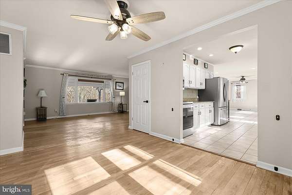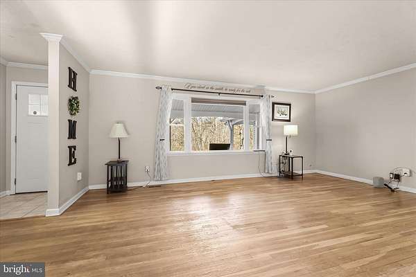 Set on seven private, wooded acres, this brick accented rancher offers a rare blend of space, comfort, and thoughtful updates, all complemented by charming curb appeal and a welcoming covered front porch. Inside, hardwood flooring begins in the living room, where a large picture window fills the space with natural light, while crown molding seamlessly carries into the adjoining dining room for a cohesive feel. The kitchen is both stylish and functional, featuring stainless steel appliances, granite countertops, and modern cabinet pulls, with easy flow into the family room highlighted by continued crown molding and a sliding glass door that opens to the backyard. The main level is designed for convenient one-level living, offering three bedrooms, including a primary suite with an updated full bath complete with a double sink vanity, dual mirrors, and a tiled shower with a frameless glass door. The additional bedrooms share a full hall bath that stands out with a vessel sink and a jetted soaking tub. The finished lower level expands the living space with a recreation room, a versatile bonus room ideal for an exercise space, home office, hobby room, or more, a full bath, laundry area, and a storage room currently outfitted with a workbench, along with exterior stair access for added flexibility. Outdoors, the property continues to impress with a gazebo, storage shed, and serene natural surroundings. An attached two-car garage with an electric vehicle charger and a paved parking pad accommodating multiple vehicles add everyday convenience. Additionally, convenient wifi-enabled door locks add modern security and ease of access throughout the home. Located in Westminster within Carroll County, residents enjoy access to outdoor destinations like Westminster City Park, Wakefield Valley Park, and Piney Run Park, along with a vibrant downtown featuring local dining, shopping, and everyday conveniences.