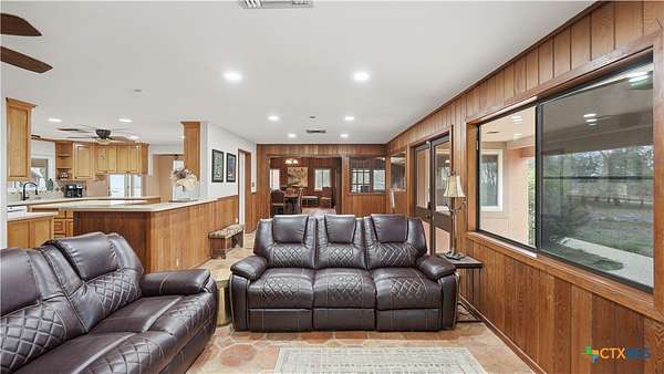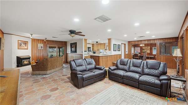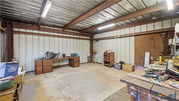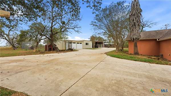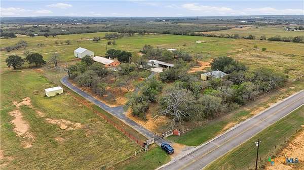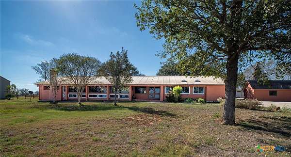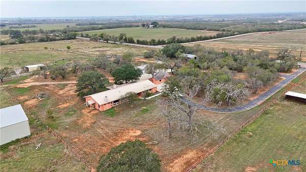 Discover an exceptional ~60-acre ranch offering a rare blend of usable land, quality improvements, and a spacious 3,200 square foot 3-bedroom, with flex room, ranch-style home. The residence features Saltillo tile floors, fir tongue-and-groove accents, high ceilings, abundant natural light, and two large living areas connected to an open, inviting kitchen and fireplace room. A formal dining, office, flex room, generous primary suite, and multiple guest spaces make the home ideal for comfort and entertaining. Designed for livestock and equestrian use, the property includes coastal grass pastures, a stock pond, multiple fenced sections for grazing, and a 3-stall horse barn with tack room, working pens, a 100' round pen, and cattle head gate. Coastal grass is currently baled by a local operator, offering turnkey ag potential. A standout feature is the insulated/cladded 40' * 60' metal building with A/C, heat, and wide-open interiors-previously used as an indoor pickleball/sports court. This versatile space is perfect for recreation, a workshop, large-scale storage, or a future barndominium conversion. Additional improvements include a 1/1 guest house with laundry, kitchen, and storage; a 4-bay carport; oversized 2-car garage; 19' * 19' workshop; RV carport; hay barn; and multiple sheds and lean-tos. With its acreage, amenities, and strategic layout, the property offers endless possibilities. Operate a full working ranch, customize and expand the existing home, or explore income and investment opportunities such as selling frontage acreage or marketing the remaining land for development or subdivision. Exceptional land quality, infrastructure, and location make this a rare and highly adaptable offering.