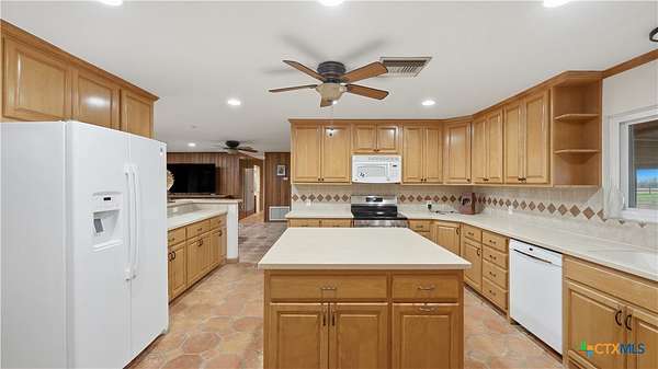 - Bedroom On Main Level, Bookcases, Breakfast Bar, Ceiling Fans, Dining Area, Double Vanity, Eat In Kitchen, Full Bath On Main Level, Garden Tub Roman Tub, His And Hers Closets, Home Office, Kitchen Family Room Combo, Kitchen Island, Multiple Closets, Multiple Dining Areas, Multiple Living Areas, Recessed Lighting, Separate Formal Dining Room, Separate Shower, Tub Shower, Walk In Closets