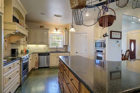 Location, Location, Location! A stunning white brick custom home, surrounded by over 75 rolling acres of north Texas hill country is now available in the flourishing small town of Valley View. This property poses a great opportunity for anyone, whether looking for a place to raise a family, rancher wanting to operate a farm/ranch, or an investor looking for the perfect development acreage. The beautiful 3/2.5/2 home was custom built in 2005 , boasts timelessly crafted cabinetry, elegant granite countertops, and etched acid stained flooring throughout. This dynamic property is situated on an FM road just a couple miles off of I-35, one of the fastest developing areas in DFW. Just a short drive to anywhere, don't miss your chance!