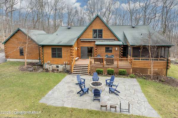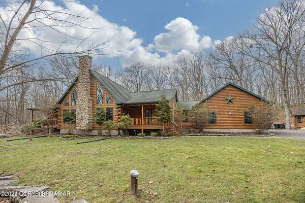 Est $5,281/moWelcome to 1212 Acacia Dr in Hawley, PA, a stunning log cabin in Hidden Lake Estates. Nestled on 2.2 wooded acres near Lake Wallenpaupack, this 5,246 sq ft home blends rustic charm with modern luxury. It features 6 bedrooms, 3 bathrooms, a vaulted great room with a stone fireplace, a granite kitchen with stainless appliances, and a loft. Enjoy a game room, home theater, two decks, a screened porch, and a serene water feature. The community offers access to a private lake for kayaking, fishing, and swimming. Close to skiing, water parks, and outdoor adventures, this is the ultimate Pocono retreat. Schedule your tour today!