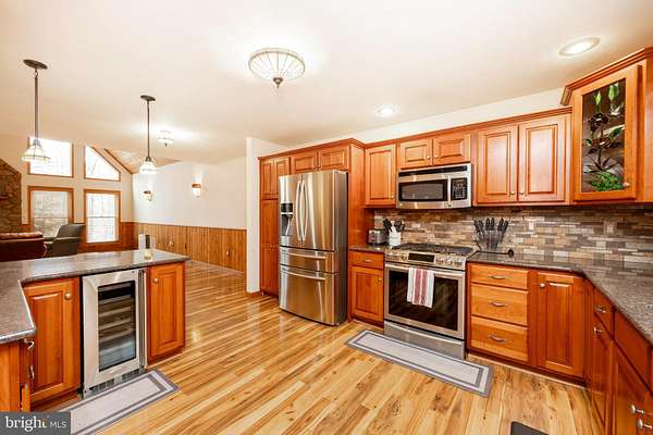 - Carpet, Ceiling Fan(s), Dining Area, Exposed Beams, Family Room Off Kitchen, Gourmet Kitchen, Open Floor Plan, Soaking Tub Bathroom, Stall Shower Bathroom, Table Space Kitchen, Upgraded Countertops, Wainscotting, Wood Floors