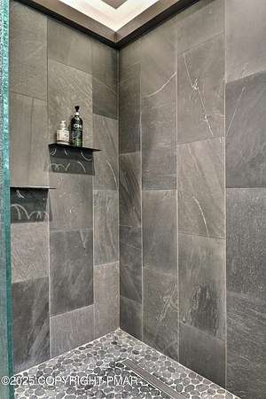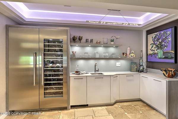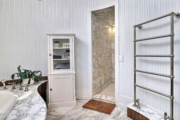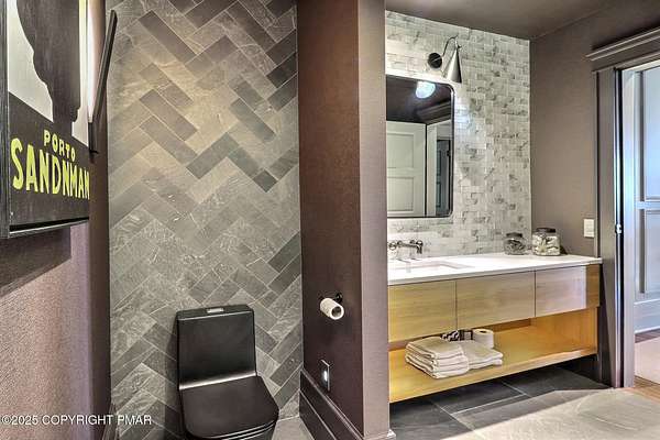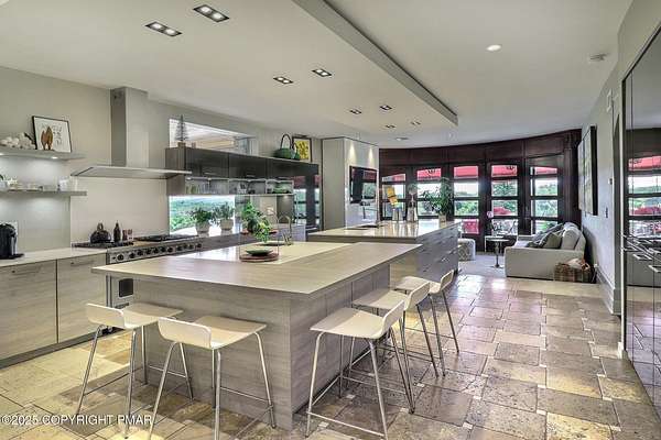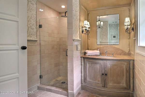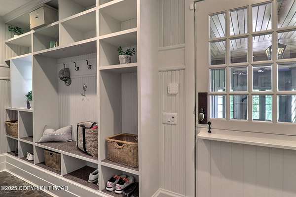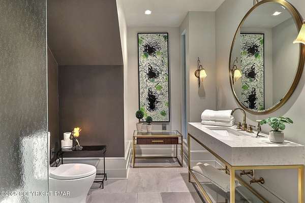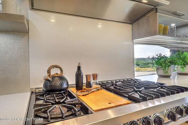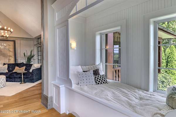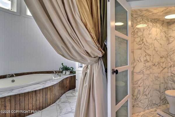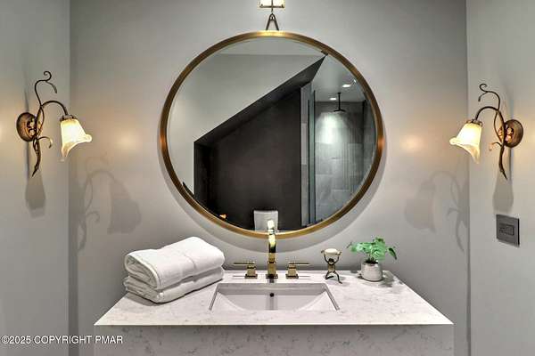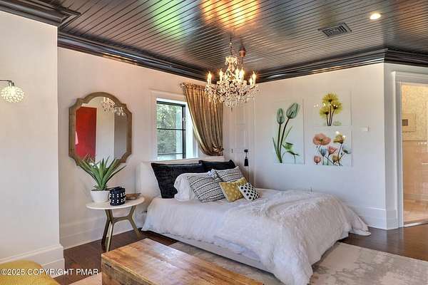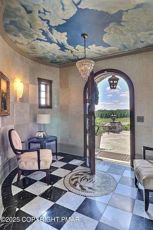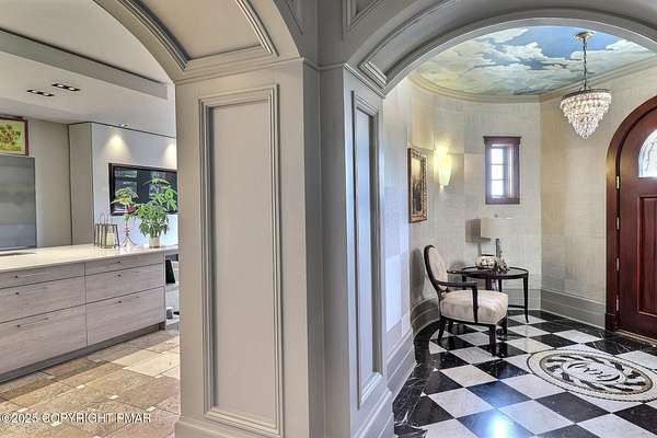 Tutto Niente - An Irreplaceable Private Estate in the Pocono Mountains! A rare 68-acre private sanctuary set amid hundreds of acres of preserved farmland in the heart of the Pocono Mountains, offering sweeping mountain views and exceptional seclusion, yet remaining within easy reach of New York City, Philadelphia, and the Northeast corridor. This four-story, approximately 8,700-square-foot architectural estate features five bedrooms and six baths and overlooks its own private vineyard with Marquette, Traminette, Aramella, and Chambourcin varietals, framed by mature trees and towering arborvitaes. A gated entrance leads to a tree-lined drive and with four garages, three climate-controlled, ideal for collectors. Inside, bespoke craftsmanship defines the home, with mahogany doors, curved walls, gold-leaf ceilings, imported granite, and art-deco detailing inspired by a classic 1920s New York hotel. Radiant floor heating throughout and commercial-grade construction ensure enduring quality. The chef's kitchen features a professional Viking range, integrated wine storage, and full bar, while the owner's suite offers vaulted ceilings, fireplace, private balcony, and a spa-like bath beneath a dramatic chandelier. A secluded guest suite and additional custom bedrooms provide privacy for family and guests. Outdoors, stone terraces, manicured lawns, open meadows, and wooded trails create a remarkable setting for entertaining, recreation, or future enhancements such as equestrian use or additional estate amenities. Also zoning potential for Potential Winery! Adding to its appeal, Pennsylvania's significantly lower cost of living, reduced property taxes, and lack of city income taxes-compared to New York and New Jersey-make Tutto Niente an especially attractive primary or secondary residence. Minutes from premier skiing, golf, lakes, resorts, and outdoor recreation, Tutto Niente is a statement estate offering privacy, architectural distinction, and refined Pocono Mountain living