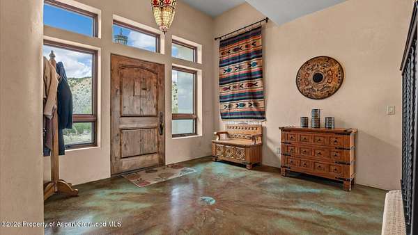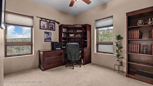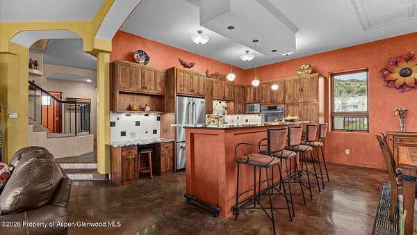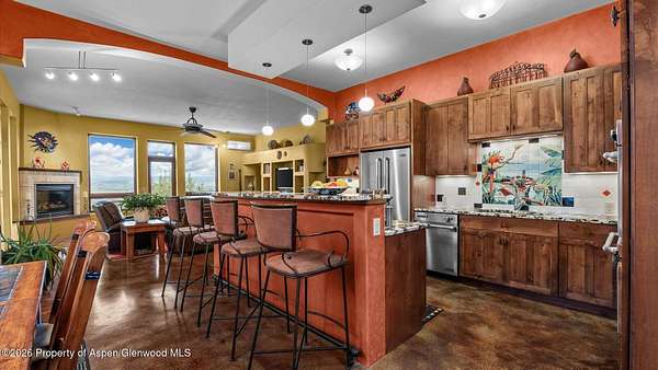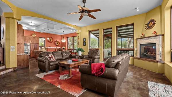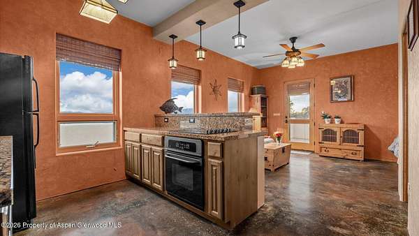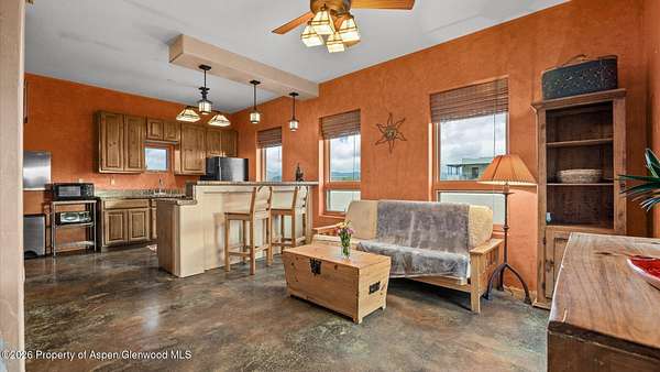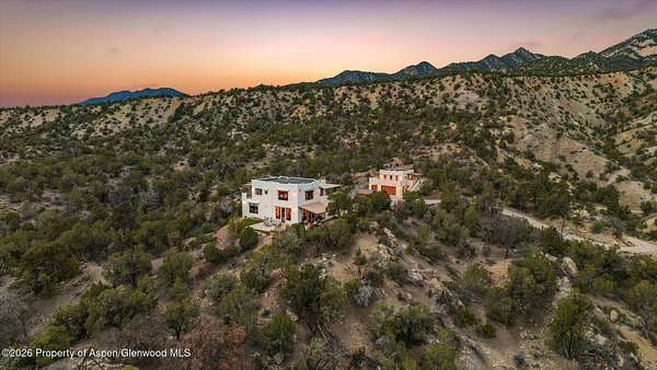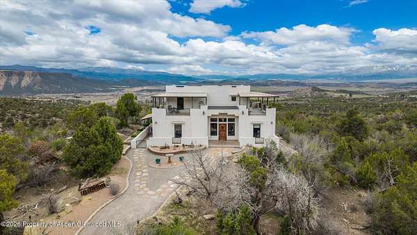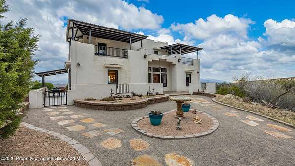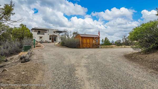 Set on 35 acres in Peach Valley and surrounded by BLM land on three sides, this property offers a rare combination of privacy, space, and thoughtful design just minutes from Silt. With panoramic views of the Hogbacks and open land in every direction, the setting delivers a level of seclusion that is becoming harder to find. This custom-built concrete home was designed with longevity and efficiency in mind, offering a quiet and solid feel throughout. Radiant heated floors provide consistent comfort, while mini split systems allow for efficient, customizable heating and cooling. Well-placed windows bring in natural light and frame the surrounding landscape. The home features three bedrooms and two bathrooms, along with a private guest casita above the three-car garage and workshop. This separate space adds flexibility for visitors, extended stays, or additional use while maintaining privacy from the main home. The kitchen is equipped with JennAir appliances and opens to the main living and dining areas, creating a natural flow for both everyday living and gathering. Multiple fireplaces add warmth and character, and the design throughout feels cohesive, comfortable, and well cared for. Outdoor living is a standout feature, with over 2,900 square feet of patio and deck space positioned to take in the views. The property includes approximately 1.5 miles of on-property trails, with direct access to surrounding BLM land for extended hiking and exploring. The natural landscape and open surroundings support a strong presence of local wildlife, and bird feeders throughout the property regularly attract a variety of birds, adding to the peaceful, everyday experience. Additional features include a well producing approximately 8 GPM, an 800-gallon cistern, underground electric, and a buried 1,000-gallon propane tank. The property also offers RV parking, a detached shed, and a designated shooting range area. Located approximately 15 minutes from town, this property offers a balance of privacy and convenience, with space to spread out and enjoy the surroundings.