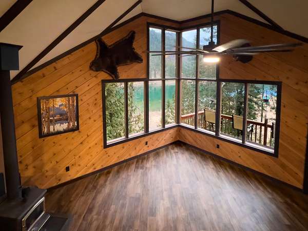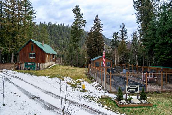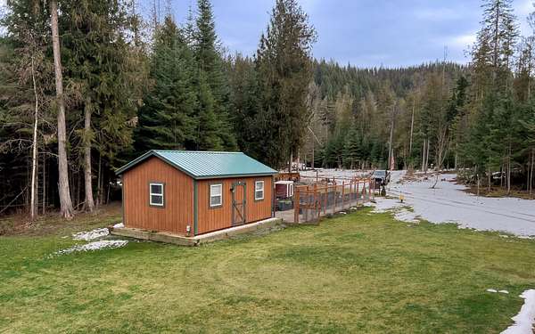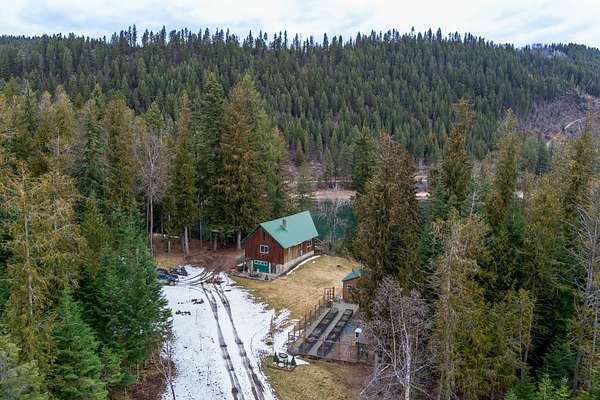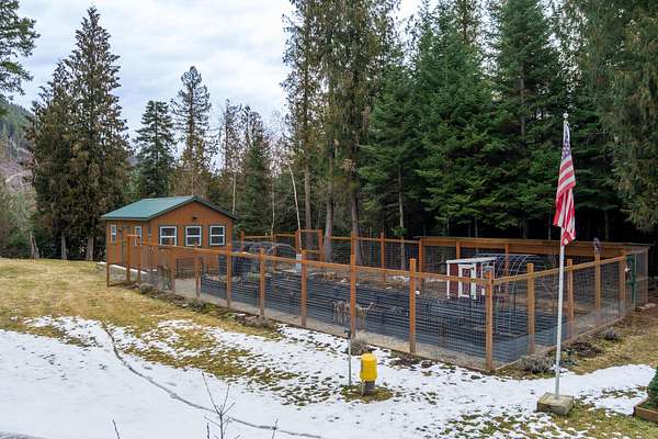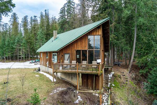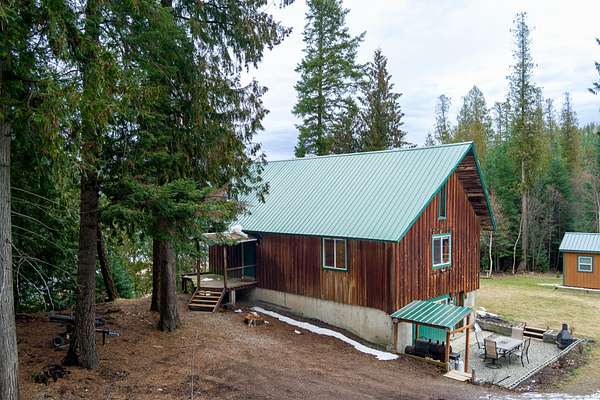 With 461 feet of Pend Oreille River frontage, this 10-acre retreat sits at the end of a private road with state land bordering the back property line. This 1,392 sq ft cabin offers 2 bedrooms, a loft & a full bath--vaulted ceilings on the main floor, insulated poured-concrete daylight walkout basement below, wood stoves on both levels.The property is set up for real productivity with a 24x56 fenced garden and 14 raised metal beds, chicken coop, and a fully roofed 8x20 chicken run (five laying hens can convey), three metal carports, and 14x20 insulated shed with power. Mature cedar, fir & hemlock fill the lot alongside planted apple trees, aspens, and chokeberries. Sullivan Lake only 30 min away.