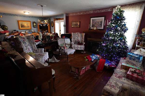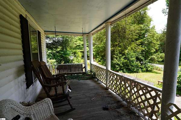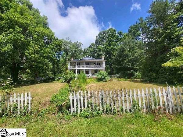 OWN A PIECE OF HISTORY in this 1880's farmhouse. Remodeled some over the years, but the history still shows. You will feel as if you have traveled back in time with the expansive front porch and the first level and upstairs. Front formal dining room with woodstove and glass doors. Large living room with fireplace. Primary bedroom on main level with 3 bedrooms, bathroom and large den upstairs. METAL ROOF tops it off. Large 2100 sq ft building with bathroom is perfect for storage or a business that also has a motor home bay. The 12.83 acres offers tons of road frontage, several buildings that serve as a chicken coop, green house, and canning building. Mountain views and several garden spots and many building sites. Sited beside CAMPBELLS COVERED BRIDGE. Call 864-895-9791 for your private tour.