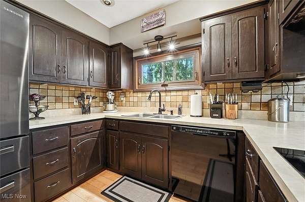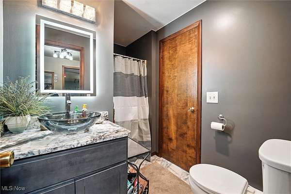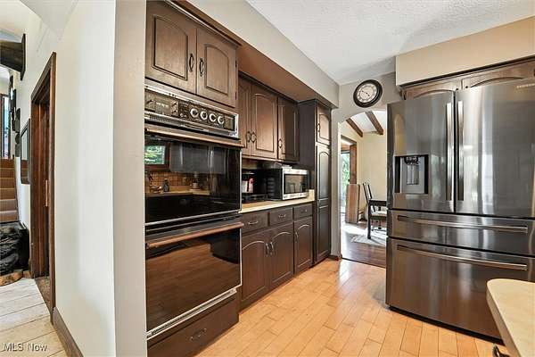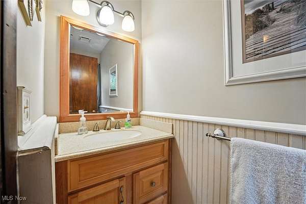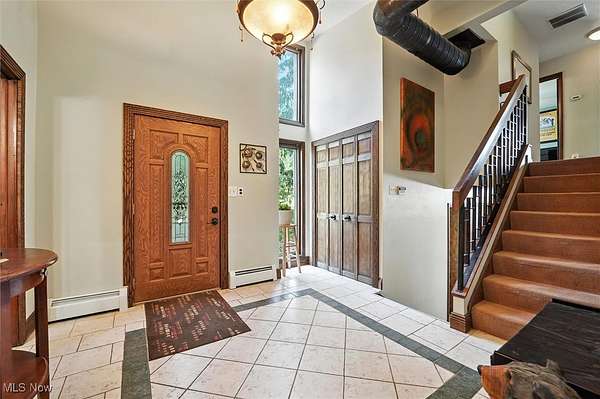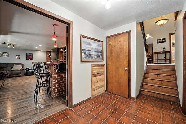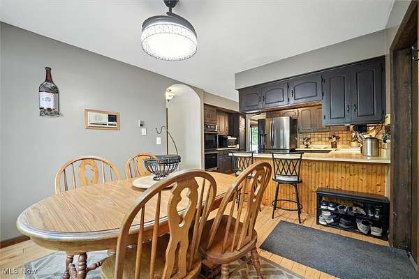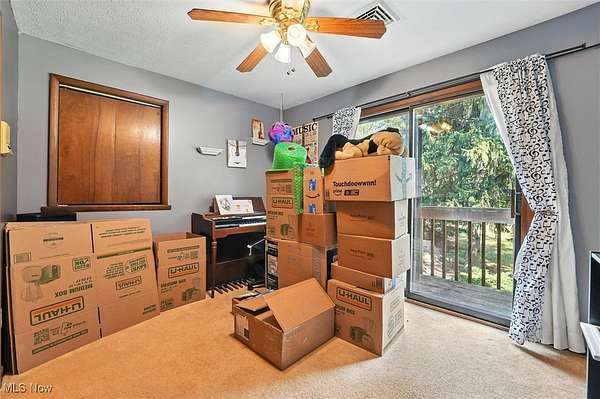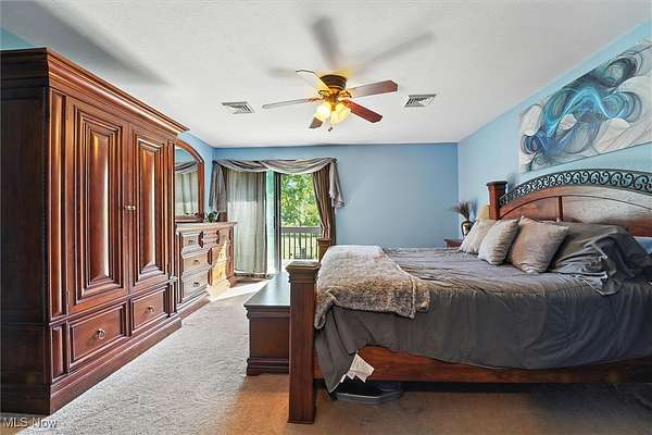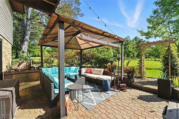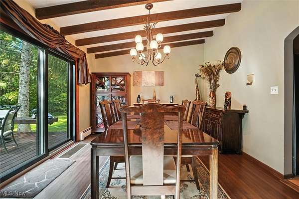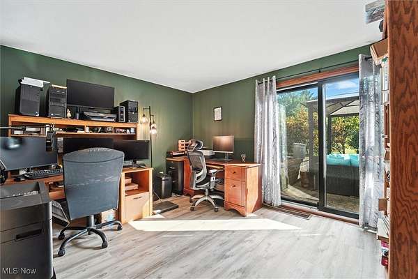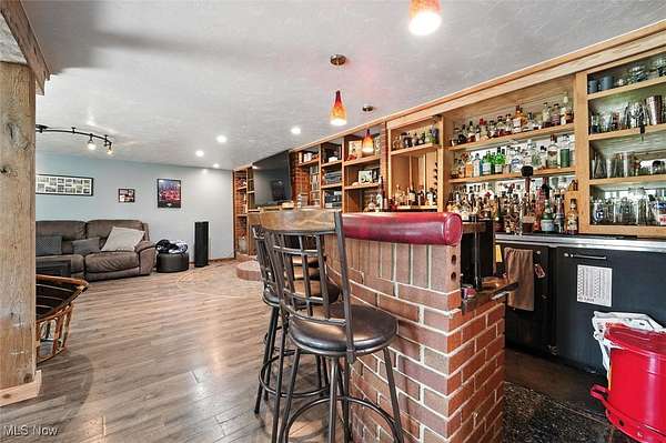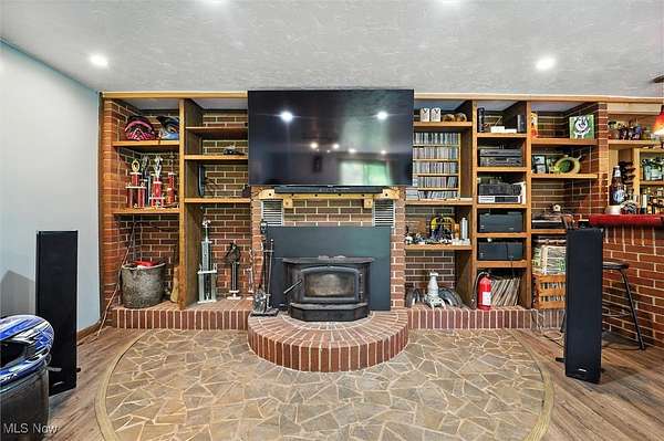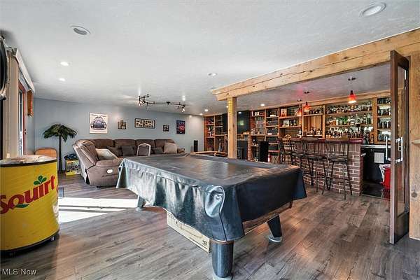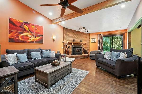 Welcome to this spacious contemporary-style home situated on just over 5 acres with an ornamental pond and wonderful outdoor living spaces. Multiple bedroom decks upstairs give this property a unique "storybook" feel, while a 27' round above-ground pool adds to the fun. Inside, the home offers versatile living and entertaining areas. The living room features a beamed ceiling, pellet stove insert in the fireplace, and access to a private deck. The dining room and eat-in kitchen provide plenty of space for meals and gatherings. A main-level bedroom (currently used as a home office) includes an attached full bath and walk-out to the patio for added convenience. The family room is perfect for entertaining, with a wood-burning insert in the fireplace, wet bar, and kegerator. The lower-level basement is equipped with a home gym system the seller would like to leave for the new owner. The primary suite includes a walk-in closet and en suite bath. Additional highlights include a two-car attached garage and multiple outdoor spaces designed for relaxation and entertaining. This home truly combines comfort, function, and character-ideal for hosting family and friends in a private setting.