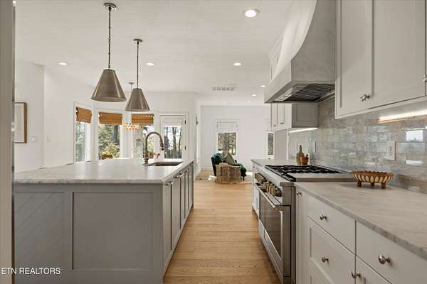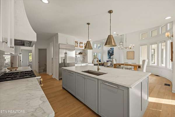 Welcome to a rare opportunity in Channel Point--where homes are known for their connection to the water, but this one quietly offers something even more difficult to find... space, privacy, and a sense of retreat. Situated on a 2.41-acre double lot and paired with a deeded boat slip, this property invites you into a lifestyle that feels both expansive and personal. As you arrive, the setting begins to unfold--lush, partially wooded, and professionally landscaped in a way that feels less like a yard and more like your own private garden escape. There are places here to gather, to play, and to breathe. A brand-new sports court, putting greens, and a saltwater hot tub are seamlessly woven into the landscape--creating an outdoor experience that feels both elevated and effortless. Step inside, and the feeling continues throughout the fully renovated interiors. Natural light pours in from every angle, drawing your eyes straight through the home to a stunning backdrop of windows framing the grounds beyond. The layout opens with intention--formal living, dining, and a beautifully reimagined kitchen--all connected by a sense of flow and airiness that carries throughout the main level. The renovated kitchen is both striking and functional, anchored by a massive marble island designed for gathering. Custom cabinetry, a Venetian plaster hood, marble backsplash, and a full GE appliance suite -including 2 dishwashers - come together in a way that feels refined without being overstated. Just beyond, a tucked-away butler's pantry with wet bar adds both beauty and practicality. Every space seems to lead you back outside-- from the breakfast nook...to the family room...to the quiet moments waiting just beyond the doors. The primary suite is its own retreat, wrapped in a graceful radius wall of windows that brings the outdoors in. A private sitting area with fireplace offers a place to unwind, while the en-suite bath--filled with natural light--features marble finishes, a custom walk-in shower, and a soaking tub set beneath cathedral ceilings. Also on the main level, you'll find a playful secondary suite with lofted architectural character and its own bath. Additionally there is a flex space designed to adapt beautifully to your needs--whether that's a media room, studio, office, or additional living area--complete with a wet bar and a full wall of windows. Upstairs, two additional en-suite bedrooms and an office with functional built-ins offer flexibility for guests or family, with one suite large enough to function as a second primary--complete with a private balcony overlooking the peaceful, garden-like setting. Downstairs, a finished basement provides additional space for recreation or fitness, along with generous storage. A circular main-level driveway offers direct side-entry access to the kitchen while complementing the lower-level driveway with access to the 3 car garage, creating both convenience and a welcoming sense of arrival. With over 5,000 square feet, mountain views, and a setting that feels worlds away--yet remains close to everything--this home offers something truly special. Not just a place to live... but a place to exhale, to gather, and to enjoy the rhythm of everyday life--both on the water and tucked within your own private retreat. Welcome Home.