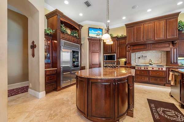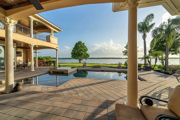 Welcome to 12125 Stonelake Ranch Blvd., a luxurious lakefront estate where elegance meets resort-style living. Located in the exclusive, gated community of Stonelake Ranch on the shores of Lake Thonotosassa, this custom-designed residence boasts over 7,000 sq ft of living space, offering 5 spacious bedrooms, 5+ bathrooms, and an unmatched collection of luxury amenities. The kitchen, with its high-end appliances, will be the envy of any gourmet chef. The large primary wing features a large bedroom with its own sitting area with plenty of room for relaxing and taking in the beautiful views of the pool and the lake in the back, with plenty of closet space and magnificent tub and shower areas. You can enjoy a private full-size home gym, relaxing sauna, billiards and game room, and your own climate-controlled wine cellar. A private elevator ensures convenience across all levels of the home, while expansive living areas and soaring ceilings create a grand yet comfortable feel. Designed for entertaining and everyday luxury, the home features high-end finishes, stunning architectural details, and breathtaking views. The oversized lot offers both privacy and access to the lake, making it a rare find in one of Tampa Bay's most prestigious communities.