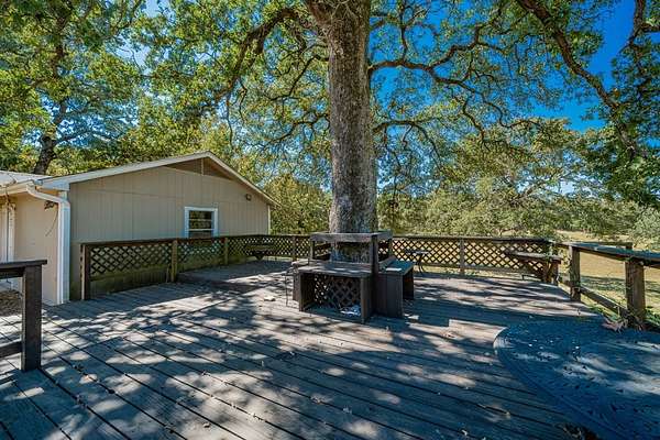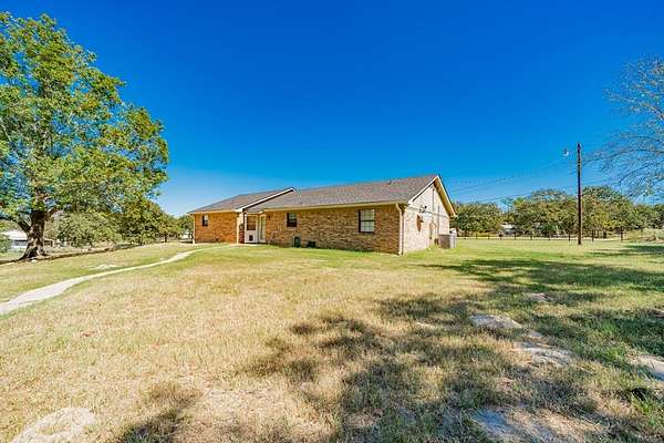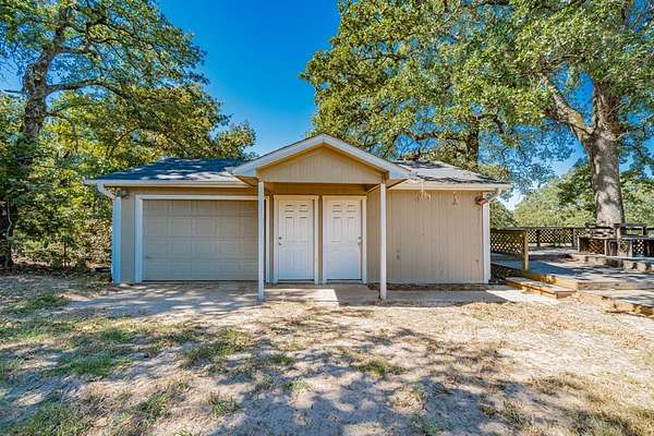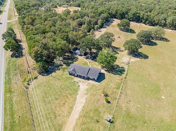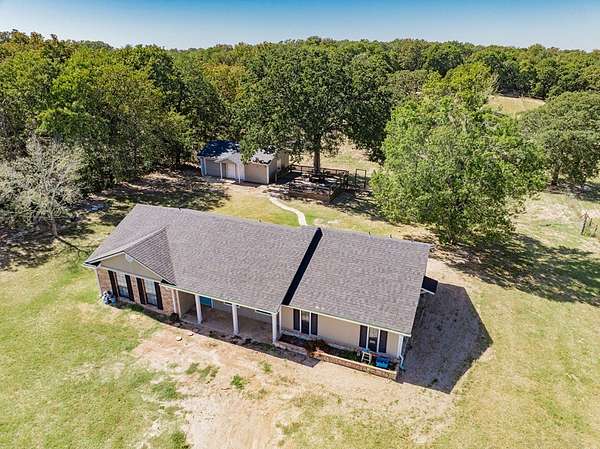 Enjoy country living on 2+ acres of open Texas countryside! This single-story brick home offers space and privacy just minutes from downtown Athens. A covered front porch welcomes you inside to a generous living area with multiple windows for natural light and direct flow into the dining and kitchen spaces. The kitchen features SS appliances, extensive cabinetry, and abundant counter space for everyday function and meal prep. A dedicated laundry room adds practical convenience. The primary suite provides exceptional space, recessed lighting, and a ceiling fan for comfort, along with a walk-in closet built for organization and a full ensuite bathroom with a double vanity and tub-shower combination. Outside, an expansive wooden deck beneath mature shade trees provides the perfect spot to take in the wide-open landscape and rolling views. A detached structure offers additional storage or workspace flexibility. The property operates on a private well and septic system, offering self-sufficient living with no city