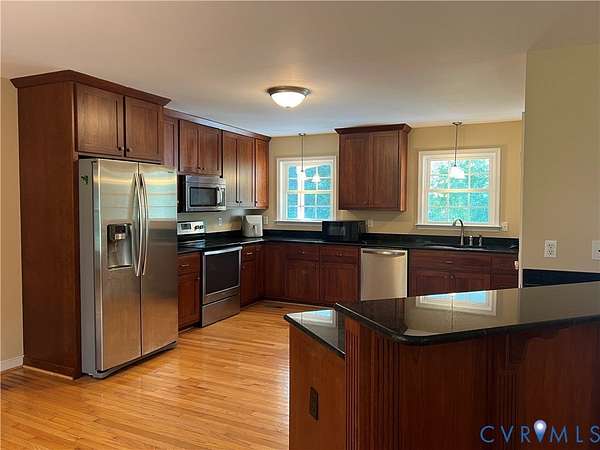 Experience the best of both worlds with this 3 acre country retreat. Just 8 minutes to the nearest grocery store, 20 minutes to Midlothian, and 45 minutes from downtown Richmond. While offering a private, secluded location for ultimate tranquility, this rancher provides all the modern comforts you need. Featuring an open concept kitchen with custom cabinetry, beautiful granite countertops, two full bathrooms, a master bedroom with walk-In closet, and double doors which open up to the large outdoor deck. Custom features include a well maintained rose garden and 1 acre of fenced in space for activities. Relax under the pergola with custom built stone floor while enjoying the sound of birds and occasional family of deer. This property is move-in ready and designed for comfortable living; it provides the beauty of a rustic setting with the convenience and style of contemporary upgrades, ensuring a peaceful lifestyle without sacrificing modern amenities.