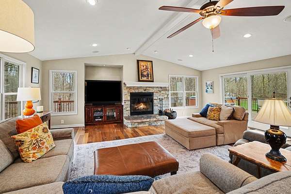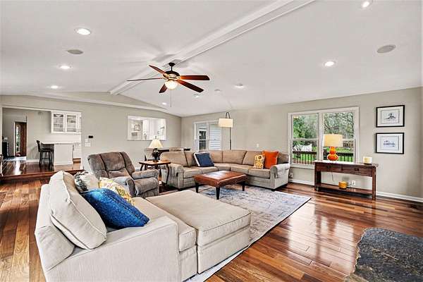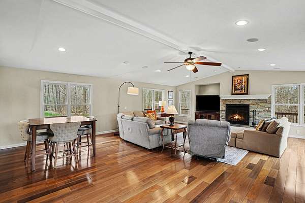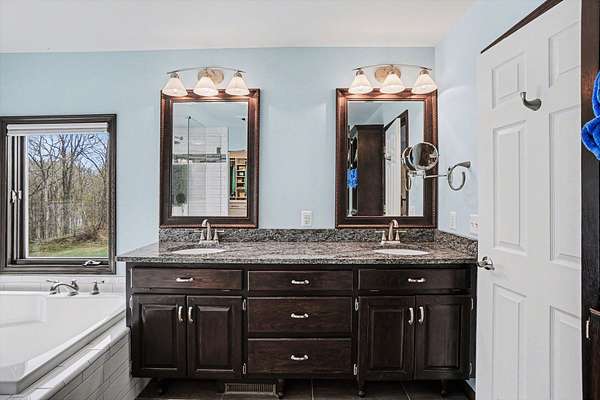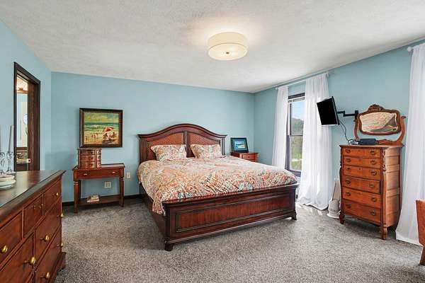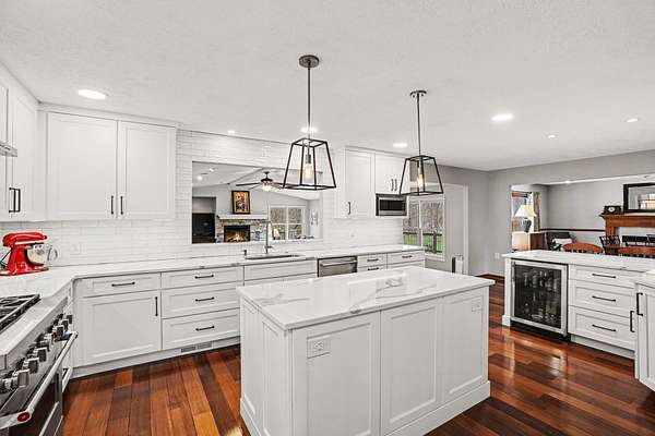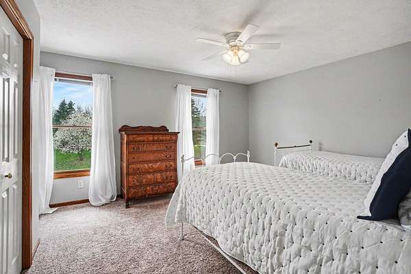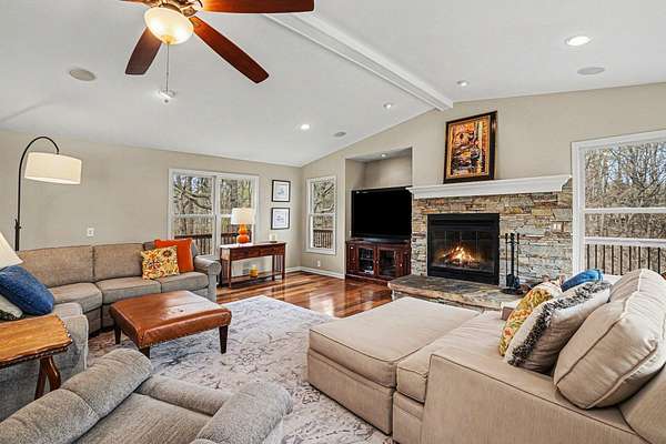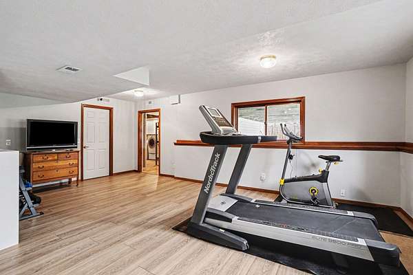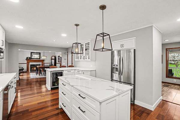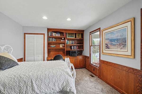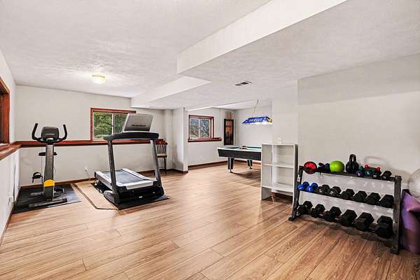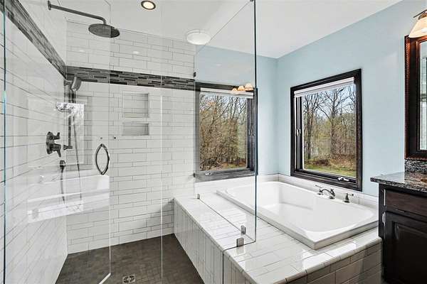 Serene setting at this 4,000-square-foot Craftsman-style home on 2.6 acres. Imagine relaxing in your hot tub surrounded by nature and mature trees while listening to the gentle waters of Sand Creek below. Let's begin outside with a circular driveway, 3-stall garage, a 24' x24' garden, an expansive covered front porch, IPE decking, underground sprinkling and close proximity to beautiful Aman Park. The main floor features a completely remodeled kitchen with a center island and snack bar which flows effortlessly into the dining and living rooms each with its own fireplace. A half bath, large foyer and bedroom complete this floor. Upstairs the Primary ensuite is spectacular with large tub, custom tiled shower, heated floors and huge walk-in closet. Two more bedrooms, a full bath, and a laundry room are also on the upper level. The walk-out lower level includes a bedroom, a full bath, a family room with a pool table, a storage area, utilities, and a 2nd laundry room.