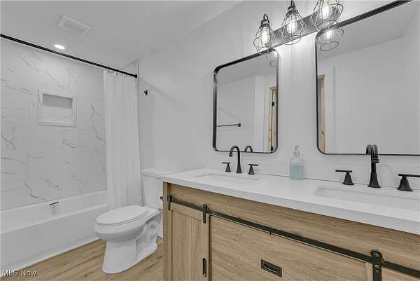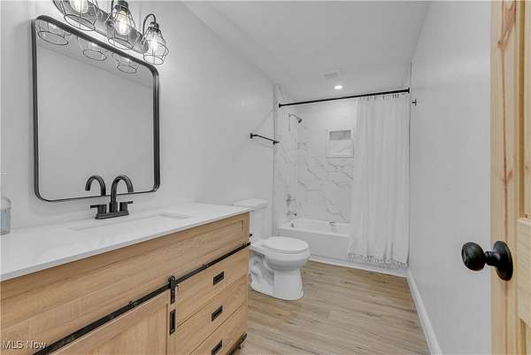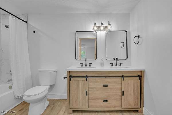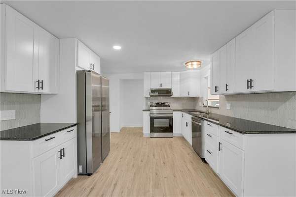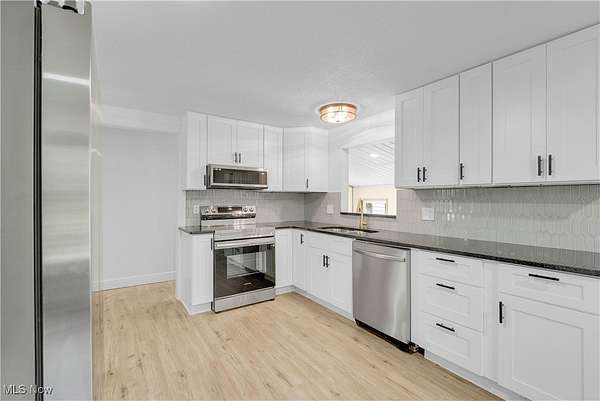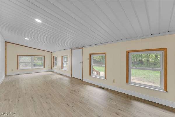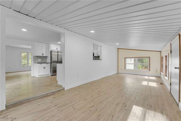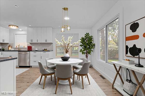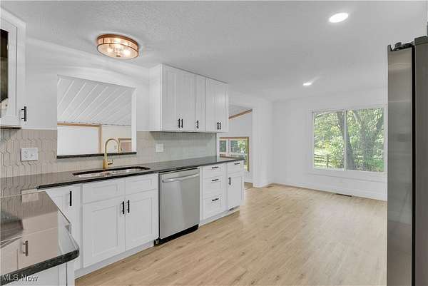 Remodeled throughout, this three-bedroom, two-bath home offers an open floor plan, modern improvements, and a private 1.5-acre lot in the West Geauga School District. From the moment you step inside, you'll appreciate the thoughtful updates and inviting spaces that make this home truly move-in ready. The heart of the home is the completely renovated kitchen, showcasing granite countertops, tile backsplash, stainless appliances, ample cabinetry, and generous storage. Luxury vinyl flooring flows seamlessly throughout, creating a warm and cohesive design. Adjacent to the kitchen, the dining room and spacious living room offer the perfect setting for gatherings. At the rear of the home, a four-season room extends your living space year-round and opens to the private backyard, ideal for relaxing or entertaining. The home offers three comfortable bedrooms, including a primary suite with its own fully updated bath. Both bathrooms have been tastefully remodeled with modern finishes. The lower-level recreation room adds versatility for family activities or entertaining, with direct access to the laundry area and an attached two-car garage. Step outside and enjoy the serenity of your own retreat. The 1.5-acre lot provides both space and privacy, while the barn with electricity and additional storage shed add incredible functionality for a workshop or hobby farm with goats and chickens. The extensive list of updates is available on request and includes siding, roof, kitchen, baths, lighting, flooring, front porch and more! Every detail has been carefully considered to create a home that is stylish, practical, and ready for its next chapter. With fresh updates inside and plenty of space outside, this home is the perfect blend of comfort, convenience, and privacy-ready for you to move in and make it your own.