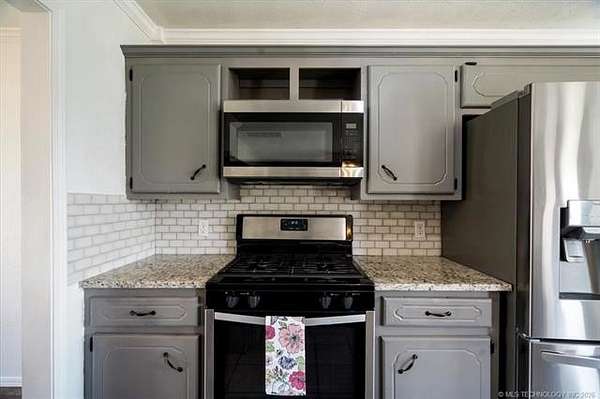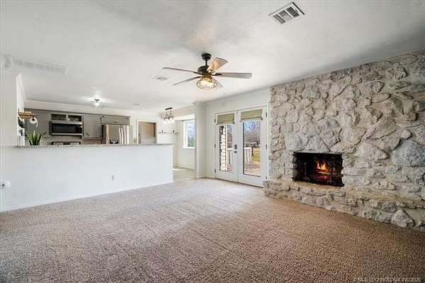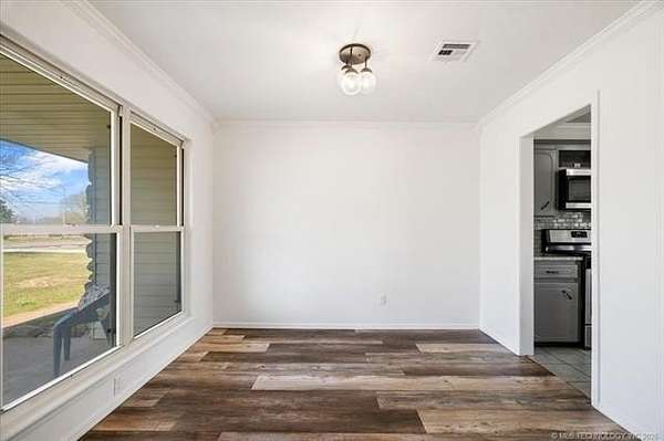 Enjoy the best of country living while still being in town! This beautifully updated 3 bedroom, 2 bath, 2 car garage home on 2.5 acres in Owasso is a rare find. This property blends classic character with modern finishes for comfortable, peaceful everyday living. Upon entering, you'll find a welcoming oversized living room with a full wall stone gas fireplace. This is a combo to the updated kitchen featuring granite countertops, newer stainless steel appliances, and a dining area with a view to the outdoors. The formal dining room looks out to the front yard where you can often see horses roaming about and/or convert this space into a home office. The primary bedroom features his and hers walk in closets and a full primary bathroom with walk in shower and updated vanity. Storage will never be an issue as there are multiple built-in cabinets throughout, including the large oversized utility/mud room offering abundant cabinet storage and size. Step outside to wide-open space ready for your lifestyle. Whether you're bringing horses, livestock, gardening or simply want room to spread out and enjoy the outdoors, the new electric fence will keep your animals safe and secure. A shed on the property provides extra storage for tools, equipment, food for the pets or hobbies. New roof, furnace, gutters, exterior paint, and trim in 2021. New HVAC, water heater & duct work in 2022-2023! If you've been searching for acreage, updates, and versatility all in one property, this Owasso home is a must-see.