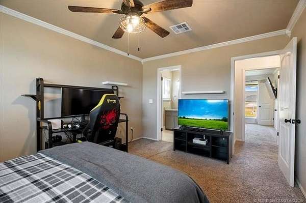 From 116th ST N and Garnett Rd go North to 121st turn Right. Follow the road all the way down until it curves to the left. Home is on the Right. 12139 N. 121st E Ave.