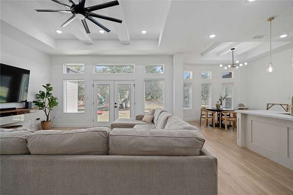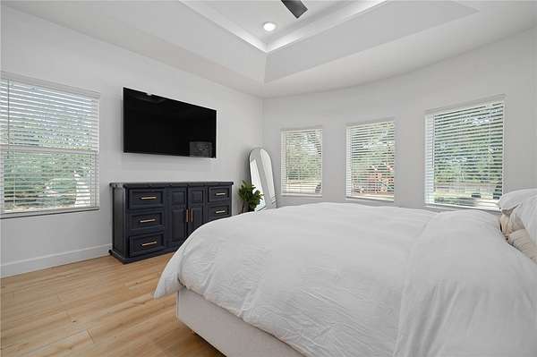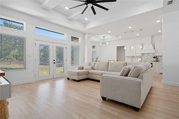 This stunning 4 bedroom, 2 bath home masterfully blends timeless architecture with a serene modern-organic interior. Nestled on 5 private acres adorned with mature oaks, the property offers both space and seclusion, creating a peaceful retreat from the everyday hustle! Step inside this stunning home to find an open, airy layout that seamlessly connects the living, dining, kitchen area with natural light highlighting the pristine, contemporary finishes and sophisticated design elements. The kitchen is a modern organic masterpiece featuring sleek quartz countertops, custom wood cabinets, state of the art appliances, an extra large walk-in storage pantry and a separate smaller pantry which is ideal for culinary enthusiasts. The primary suite serves as a private retreat featuring a spa like bathroom where every day feels like a vacation! This spacious and airy bath will take your breath away with a custom dual vanity draped with quartz, a large walk in shower incased in beautiful quartz tile and a large jet tub for relaxing and unwinding. The additional bedrooms are equally impressive boasting 9' ceilings for an enhanced spatial feel and large windows offering serene views! Outside, the possibilities are endless with 5 acres of picturesque landscape, gorgeous oak trees and a fenced in yard for privacy and play! Envision hosting gatherings, enjoying outdoor activities or relishing the peace and serenity of the sounds of nature. Located in Aransas Pass, this home offers the best of both worlds- a quiet private setting that is moments away from popular fishing spots, beautiful beaches and a vibrant community that cherishes the coastal lifestyle! Call today to begin your next chapter! You don't want to miss this!