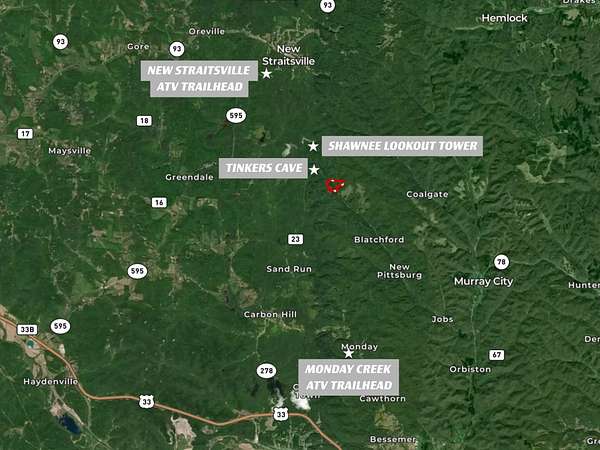 Perched atop a hill, a rustic Saltbox cabin (built 2019) offers breathtaking, panoramic views of the surrounding landscape. The cabin serves as the perfect basecamp for all your adventures or a peaceful sanctuary to unwind. The land itself is a natural wonderland, meticulously cared for with well-maintained trails that wind through the acreage. You'll find a seasonal creek, dramatic rock outcroppings, and abundant signs of wildlife, including excellent white-tailed deer and turkey sign, perfect for hunters. For those who love the outdoors, the location is unbeatable. You'll be surrounded by the Sunday Creek Coal Wildlife Area, providing thousands of acres of public land to explore and hunt. Enjoy a short drive to popular spots like Tinkers Cave, the Shawnee Lookout Tower, and multiple Wayne National Forest Trailheads. Annual taxes are approximately $995. Don't miss out on this one-of-a-kind property; call now to schedule a showing!
