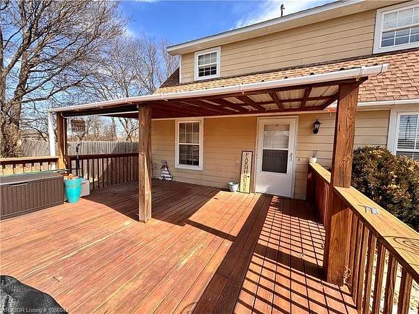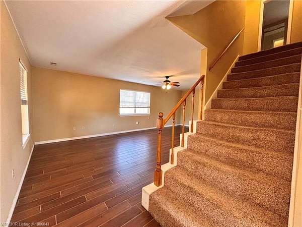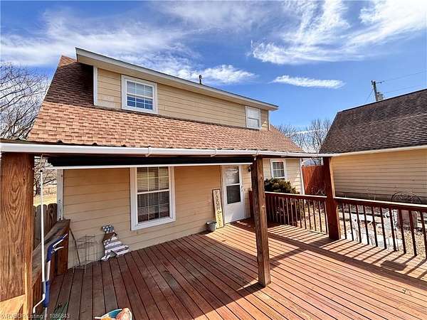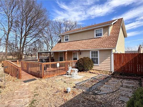 This listing sits just outside Fayettville in the Farmington area with a little space outside but still close to amenities. This 2 bed/2 bath home is sitting on 1.5 t/- acres with a fenced backyard and a detached garage with a room upstairs(the square footage in the listing does not include this space). Relax on the covered front porch or the balcony upstairs(there is a ramp at this area for easy access) The living room, kitchen, dinning, utility room and 1 bathroom is downstairs. Upstairs there is 2 bedrooms and 1 bathroom with a door to the balcony. If you're looking for small acreage and outdoor entertaining space, this just might be for you! Agent/Brokerage does not measure the home square footage: it is an estimate only.