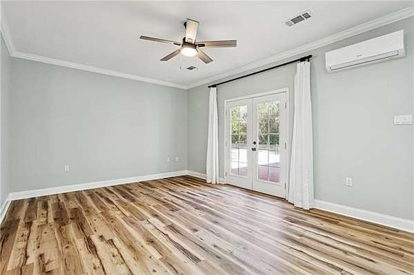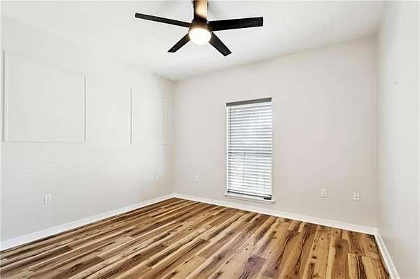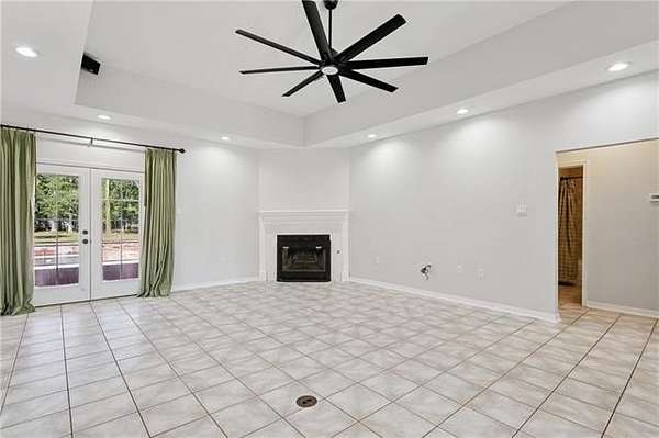 This beautifully updated home sits on nearly two acres and offers a thoughtful split floor plan with four bedrooms, two bathrooms, and a dedicated office space/room. The living area feels open and bright, centered around a cozy fireplace. Soaring ceilings with recessed lighting and a sleek oversized ceiling fan add a modern touch, while French doors invite you to step outside and enjoy the view of your private backyard retreat.