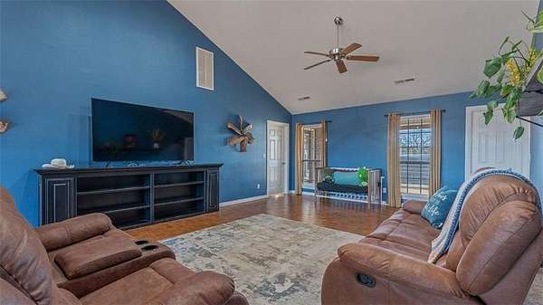 Custom brick home set on 11.93 acres with rolling pasture, mature trees, and a private pond, offering privacy and wide-open views just minutes from town. This 3-bed, 3-bath home features cathedral ceilings, tile floors, and an open living area filled with natural light. The kitchen offers ample cabinetry, modern appliances, and a functional island. The primary suite includes an updated bath with a soaking tub and custom tile shower. Outdoor features include a covered patio, fenced areas, above-ground pool with deck, and a detached workshop with electric, gas and water. Additional highlights: detached 2-car garage, asphalt drive, propane heat, public water, septic, and generator-ready setup.