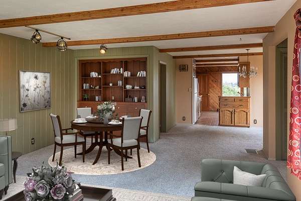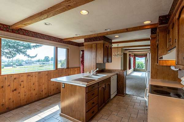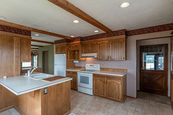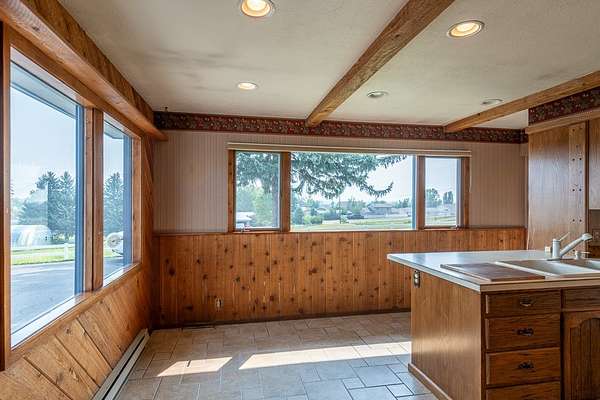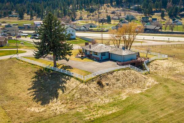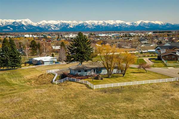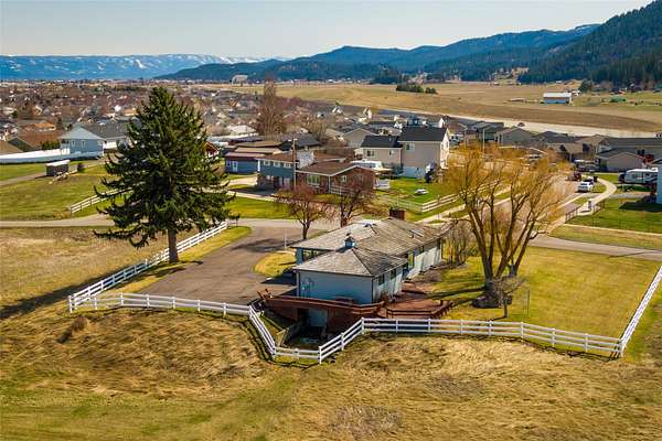 Experience the best of Montana living with this exceptional 3+ acre property on two separately deeded parcels, offering the tranquility of country life with quick access to city amenities. Just minutes from downtown Kalispell and the Hwy 93 bypass, this elevated setting showcases breathtaking 360-degree mountain views that fill the home with natural light and provide a front-row seat to every season. The 2,600+ sqft home features a smart, versatile layout. The main level includes two bedrooms, one bath, an inviting kitchen, open living and dining areas, laundry, and a cozy fireplace. The lower level adds two additional bedrooms, a bath, bonus living space, a second laundry area, and a wood stove for efficient backup heat. This property has been lovingly maintained, is non-smoking with no live-in pets, and is ideal for horses or livestock. Outside, you'll find expansive landscaping, established trees, and no restrictive CCRs or HOA, giving you the freedom to use the land as you wish. Highlights include a remodeled main-level bath, remote-controlled window treatments, cold storage, an outdoor fireplace for gatherings, and a flex room beneath the garage that offers ample space for a workshop, wood storage, or other uses. For outdoor enthusiasts, Lone Pine State Park is within walking distance, and the nearby Rails to Trails path provides miles of biking and hiking. With Whitefish, Bigfork, Glacier National Park, and Glacier International Airport just a short drive away, this property combines privacy, convenience, and stunning natural beauty-making it the perfect place to call home. Photos with furniture have been virtually staged.
