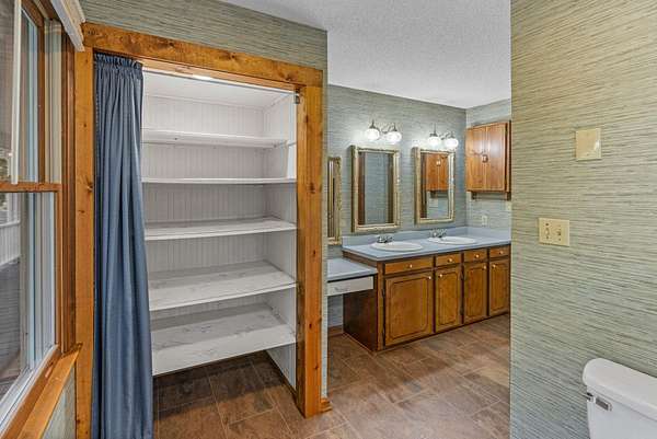 - Attic Stairs-Disappearing, Ceiling Fan, Ceilings-Cathedral/Raised, Ceilings-Some 9 FT +, Countertops-Laminate, Fireplace, Gas Logs, Smoke Detector, Split Bedroom Plan, Walk in Closet, Window TRMNTS-Some Remain