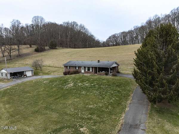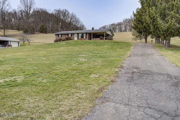 Brick ranch on 3.05 surveyed acres in a peaceful country setting just minutes from Jonesborough conveniences. This 3-bedroom, 1.5-bath home offers the simplicity of one-level living with a full unfinished basement, ( which is plumbed), providing excellent storage or future expansion potential. The home features a covered carport with a side entry door, plus a detached garage and workshop for hobbies, equipment, or additional vehicles. A separate shed adds even more storage space. The long driveway runs up the right side of the home to the carport, offering generous parking all the way to the top of the property. There is also a 35-foot right-of-way driveway located on the left side of the property. The property is served by septic and well water, with public water available at the road should a buyer choose to connect. The 3.05 acres provide open space and privacy, ideal for gardening, small livestock, or simply enjoying a quiet East Tennessee setting. If you've been looking for acreage, usable outbuildings, and room to breathe while staying convenient to town, this property offers a solid opportunity to make it your own. Buyer to verify all information. (1909R/1355S)