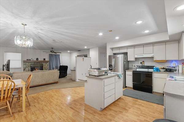 - Bonus Room, Ceiling Fans, Eat-In Kitchen, Electric Range, Kitchen Island, Laminate Counter, Laundry Tub, Laundry/Utility Room, Living Room, Pantry, Separate Dining Room, Split Floor Plan, Walk-In Closet(s), Wood Cabinets, w/ Hookups