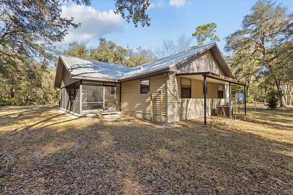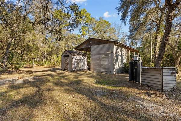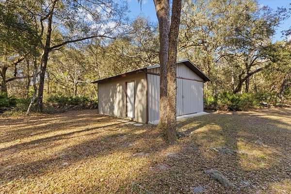 If you have been looking for a home that offers privacy and seclusion yet a short drive to town, then look no further! This property is a DREAM. The perfect 3 bedroom/2 bathroom home located on 5 acres MOL , tucked away in the woods surrounded by Floridas natural hardwoods. The home has only had one owner and was custom built. Property is fully fenced , as you enter the drive and to the home, front porch is screened perfect to enjoy the outdoors, front door opens up to a bright open floorpan. Living room with gas fireplace, you have a family room WITH closet and French doors that can be used as a third bedroom, office, entertaining room etc. Kitchen is nice and open, dining area with a gorgeous view onto the back porch, which is fully screened . Laundry room is spacious coming right off the carport. Master bedroom with master bathroom. Then guest bedroom with a built in Murphy bed and guest bathroom. Outside you have a oversized pole barn large enough to fit an RV with power for your RV, a storage space as well. A shed for storage and a nice detached garage to store all your yard items, ATV, UTV's etc. The property is only a short drive to Chiefland for all your shopping, dining and medical needs. A short drive to the Manatee Springs State Park or Suwannee River. Accepting ALL loans, call today for YOUR tour!