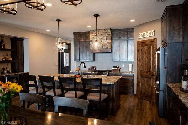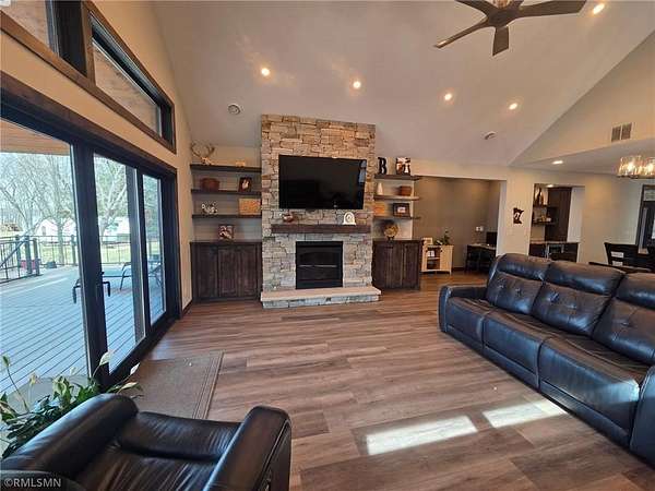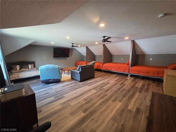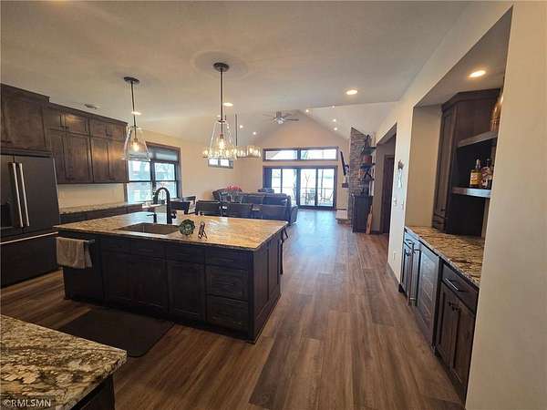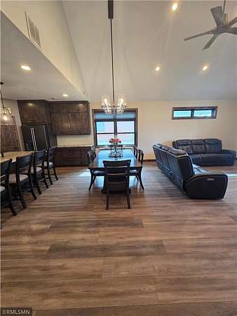Custom Lake Home built in 2022 on 1.84 acres. 2,951 above grade finished square footage. Great, Level Sandy Shoreline with Spectacular Sunset Views. Great for swimming. 3 Bedrooms with 2.5 Baths. It is a perfect layout for a large family/multiple families or for a short term vacation property. The home will easily sleep 16 with the Bonus Room above the Garage, which is setup for Entertainment and additional Sleeping Space. The Maintenance Free Deck is 13x34 with a Vaulted T&G Covered Roof Area. An Additional 30x24 Pole Shed is included for all the lake toys. The dock is included. Infloor Heat throughout the home and garage. Wide Open Floor Plan with a Built in Wine Chiller/Bar Area. Pokegama Lake connects to Cross Lake via the Snake River for miles of waters to travel. Pine City offers a 9 hole golf course, Art Center, and Micro Brewery. Pine City public docks on the Snake River gets you access to all the downtown amenities while on the water. Fish Cleaning Station in garage with a sink.