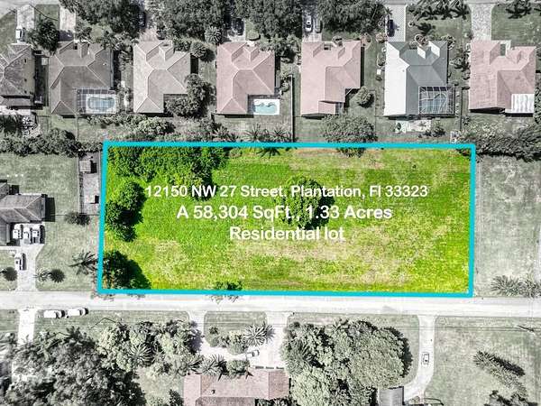Awesome Large & Wide-Open Lot measuring (app) 1.330 Acres (58, 304 SQ FT) in Beautiful Plantation Acres. Sitting on A Paved Road with ALL Utilities available, This desirable location is close to Excellent Shopping (SAWGRASS MILLS); Restaurants; Highways 75; 595 and 869. If you are looking for Solitude and Space within City Life this is where you can find it. Plantation Acres offers the Best of Everything. It is a Premier City in Broward County and is part of the South Florida Metropolitan Area. This is a One-of-a-Kind VACANT LOT, surrounded by High End Homes and now available in Plantation Acres.