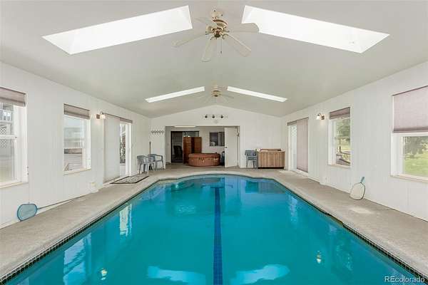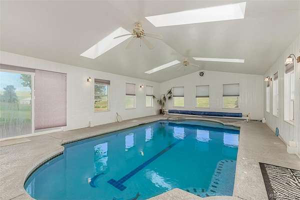 Custom-built two-story on 5.5 acres. Beautiful horse property with mountain views. House faces toward the morning sun and the back is covered by the setting day, filling the home with natural light throughout. French Entry doors take you into a nice entryway connecting the sitting room, kitchen and hallway. There is a Sunken living room with an exposed-beam cathedral ceiling, formal dining, Kitchen featuring JennAir Range top and in eat-in kitchen. Attached Pantry off of Kitchen. Main level bedroom or office, Laundry room and garage access. . There is a Spacious master upstairs with a vaulted ceiling. Attached bath with double vanity and lots of closet space. Two Bedrooms and a bath. The basement offers a large open area surrounded by three additional bedrooms, a bathroom, a large pantry, and a walkout to the enclosed 15000 gallon swimming pool ranging in depths of 3-6 feet. Two sliding doors give outdoor access. There are Anderson double-pane windows throughout. Home Warranty transferable and good to 2028. Enjoy outdoor living with a patio perfect for gatherings and a yard with mature landscaping. Great horse property with three stall barn, corralled area, and room to roam. Fantastic garden area too. Close to the city while enjoying the country life. This is a great family home.