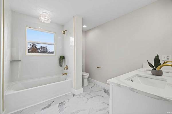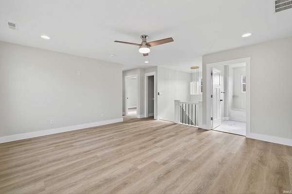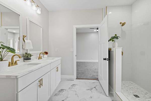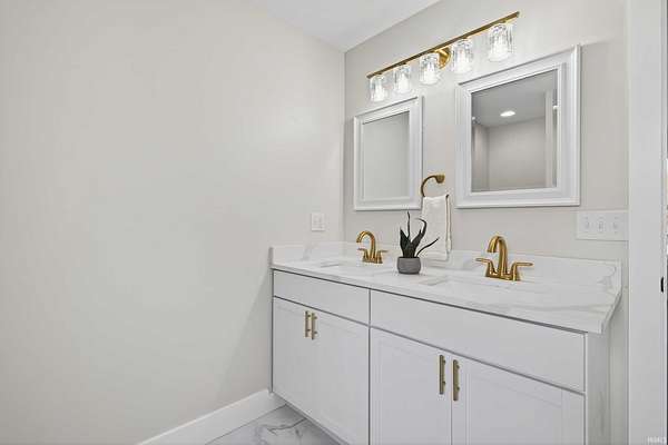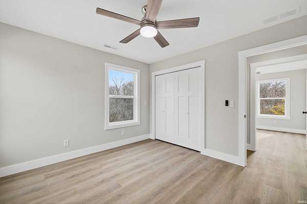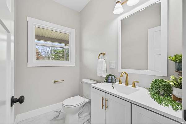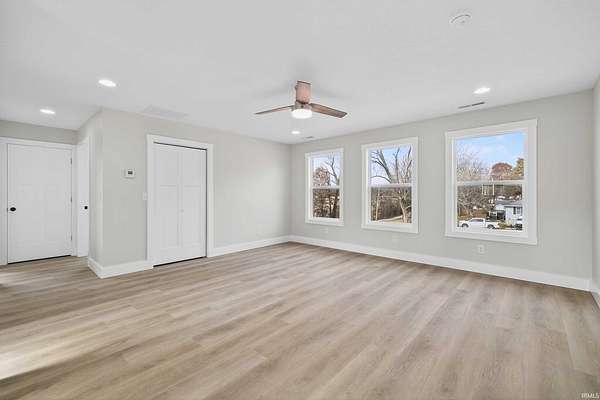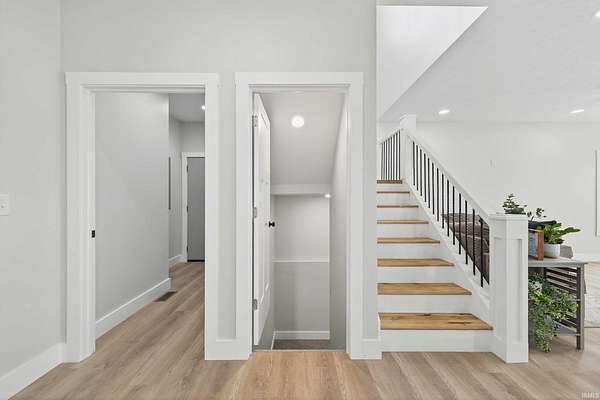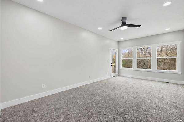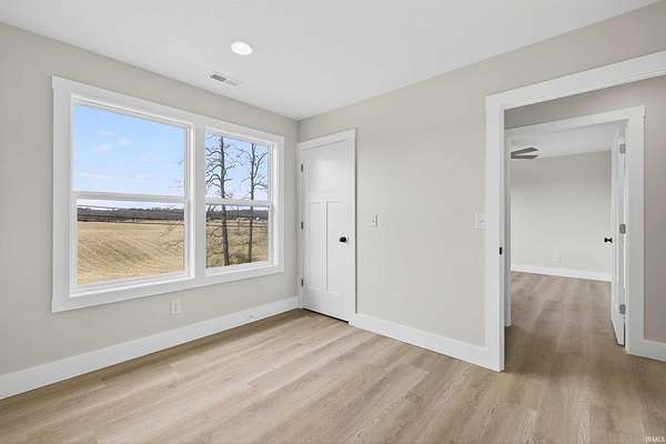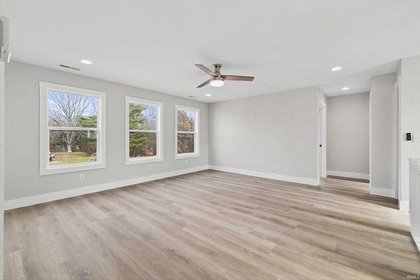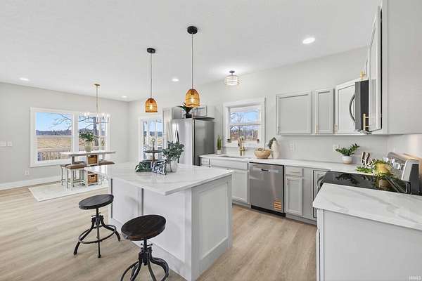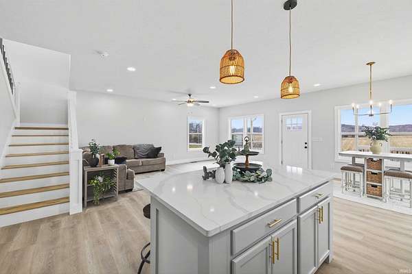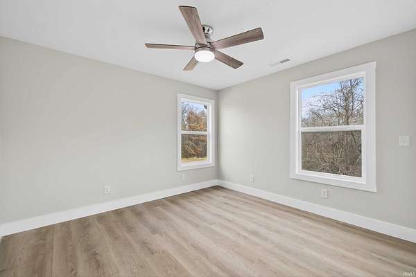 ELEGANT. SPACIOUS. PEACEFUL. This beautifully updated home offers the perfect blend of style, space, and peaceful surroundings. Situated on 2.83 acres, you’ll fall in love with this FIVE bedroom, 2.5 bathroom home, thoughtfully rebuilt from the foundation up. Welcome guests from the wraparound porch, an ideal place to relax and take in the scenic country views. Inside, you’re greeted by a spacious open-concept layout that seamlessly connects the living room, dining area, and kitchen, creating a perfect setting for both entertaining and everyday living. The main level primary suite offers a private retreat, complete with a stand-up shower, generous closet space, and direct access to a deck overlooking peaceful wooded views. A convenient half bath completes the main floor. Upstairs, you’ll find a large loft-style family room, additional bedrooms, and a flex room that can serve as a fourth bedroom or an upper-level laundry space. The finished full basement expands your living space even further, offering endless possibilities for a home theater, game room, or entertainment area, along with a second laundry area. Step outside to enjoy a beautiful mix of open yard and wooded landscape, ideal for relaxing or outdoor activities. The property also features an attached 2-car garage and a detached 3-car garage, providing ample room for vehicles, storage, or workshop space. Originally taken down to the foundation, the home was expanded and completely rebuilt, now featuring elegant finishes throughout and coming complete with kitchen appliances. Utilities are provided by Duke Energy and North Lawrence Water. With refined finishes, generous living space, and a serene country setting, this home offers the perfect balance of comfort and style.
