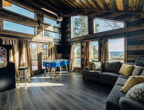 The crown jewel of Hochatown's most exclusive and highly coveted enclaves, where unparalleled luxury meets breathtaking seclusion in the heart of southeast Oklahoma's premier mountain retreat. This extraordinary 2,100-square-foot modern masterpiece commands one of the most enviable vantage points in all of Broken Bow/Hochatown, perched on a pristine, gated 3.67-acre estate that feels worlds away yet remains effortlessly connected to the area's elite amenities. Nestled amid the rolling Kiamichi Mountains, this rare offering delivers panoramic, jaw-dropping views of the mountain valley and shimmering Broken Bow Lake below-views so captivating they redefine "above the clouds." Step inside to discover sophisticated contemporary elegance: four impeccably designed bedrooms, including a dedicated bunk room for effortless family escapes, a sprawling game room for entertainment, and a gourmet chef's kitchen crafted for discerning hosts. The two downstairs bedrooms boast oversized windows that frame the dramatic valley vistas like living artwork, while upstairs, two expansive suites await-one with its own private ensuite oasis, the other sharing a luxurious jack-and-jill bath seamlessly connected to the game room. Every bedroom features striking accent walls, bold yet refined color palettes, and the finest modern finishes that exude understated opulence. The journey to this private sanctuary is an experience in itself: ascend the fully paved, winding mountain road with sweeping, unobstructed panoramas of Broken Bow Lake unfolding before you-a prelude to the serenity that awaits. Just under a mile from the iconic Broken Bow Dam and the pristine shores of Broken Bow Lake, yet tucked away in privileged seclusion, this property offers the ultimate balance of accessibility to Hochatown's finest dining, wineries, outdoor adventures, and boutique charm-without sacrificing an ounce of exclusivity. Whether envisioned as your personal high-end second residence or a premier income-generating luxury retreat in one of the region's most sought-after markets, Above The Clouds stands alone as the pinnacle of Hochatown sophistication. Properties of this caliber-secluded acreage, commanding elevations, and flawless modern design-are exceedingly rare. Once discovered, you may find that no other destination measures up. Secure your private tour today-this is more than a cabin; it's the epitome of elevated living in Broken Bow's most prestigious domain.
