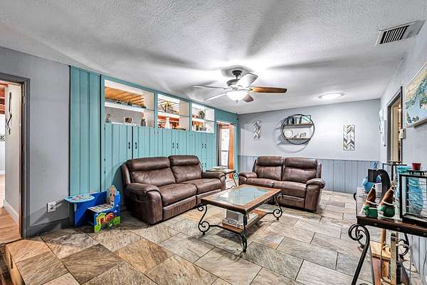 - Auto Garage Opener, Book Cases, Ceiling Fan(s), Pantry, Propane Tank-Owned, Skylight(s), Smoke Detector(s), Tile Flooring, Vinyl Flooring