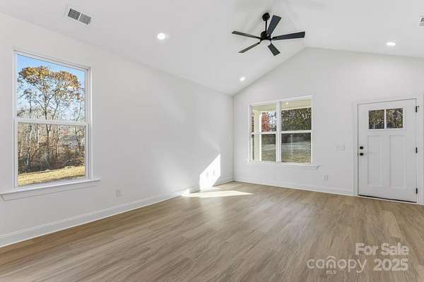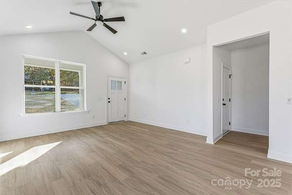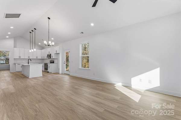 This light and airy NEW CONSTRUCTION gem blends modern design with everyday comfort on a LARGE 1.75 acres. Featuring 3 bedrooms and 2 bathrooms, the open floor plan plus vaulted ceilings create a bright, spacious feel throughout. The chef-inspired kitchen is a true showstopper - featuring a large island, quartz countertops, white subway tile backsplash, stainless steel appliances, abundant cabinetry, and a generous pantry for all your storage needs. Each bedroom offers sizable closets and thoughtful finishes, ensuring a perfect balance of style and function. The separate laundry room adds convenience and a side yard accessible entrance from the dining area leads out to the MASSIVE side yard! 2 Car Garage is phenomenal for keeping your cars protected OR great for additional storage.