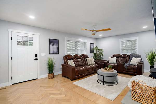 Experience the perfect blend of country privacy and modern comfort on 8.2 acres just minutes from Republic. Fully renovated and designed for functional living, this spacious home offers 3,000+ square feet, 4 true bedrooms PLUS a 5th nonconforming bedroom, multiple living areas, and a 25x25 detached garage shop providing the flexibility today's buyers want. A circle driveway leads to an inviting front porch and into a warm, open main level featuring real hardwood floors, a wood burning fireplace, and sightlines from the living room into the dining area and custom kitchen. The kitchen is beautifully updated with white shaker soft close cabinetry, Quartz countertops, a large island, brand new stainless appliances including an induction cooktop, and easy access to a convenient mudroom laundry that connects directly to the oversized attached garage. The main level primary suite offers a peaceful retreat with a walk in closet, dual vanities, a walk in shower, and a soaking tub. Two additional bedrooms and a full bathroom complete the main floor. The finished basement expands the home significantly, featuring a second wood burning fireplace, a custom entertainment bar with built in drink racks, wine cooler, and ice maker, plus a full bedroom and bathroom. A 5th nonconforming bedroom and an additional large flex room offer endless possibilities such as a home office, home gym, playroom, craft space, or safe room. Outside, the land provides the freedom and privacy acreage buyers love. The 25x25 detached shop garage is perfect for hobbies, equipment, storage, or projects and adds immediate value. With updated systems, modern finishes, multiple living areas, flexibility for large families or multi generational living, and plenty of space to spread out, this property offers a rare opportunity to enjoy move in ready country living without sacrificing proximity to town.