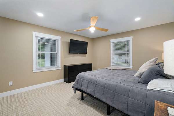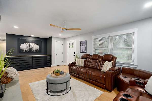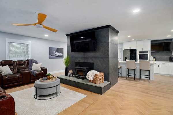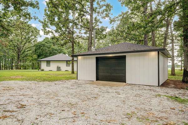 Acreage, updates, and location! This one delivers all three. Located on 8.2 acres minutes from Republic, this 3,000+ sq ft home offers space, flexibility, and a detached shop. The main level features hardwood floors, a wood-burning fireplace, and an open layout. The kitchen includes white shaker cabinetry, quartz countertops, a large island, and new stainless appliances with an induction cooktop, plus a mudroom/laundry connecting to the oversized attached garage.The main-level primary suite offers a walk-in closet, dual vanities, walk-in shower, and soaking tub. Two additional bedrooms and a full bath complete the main floor. The finished basement adds a second fireplace, entertainment bar with wine cooler and ice maker, a full bedroom and bath, a 5th nonconforming bedroom. The 25x25 detached shop provides space for storage, equipment, or projects, while the acreage offers privacy with convenient access to town.