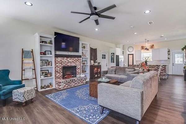 Welcome to this exceptional 4.8-acre property offering the perfect blend of modern living and country charm, complete with two separate homes, a heated and cooled workshop, RV accommodations, and room to stretch out and enjoy the outdoors. Ideal for multi-generational living, a family compound, or small farm setup, this property is fully fenced (except at the driveway) and located just off Hwy 605, only minutes north of I-10, providing the peace of the country with convenient access to town. The main home, newly built in 2023, features 1,620 square feet of well-designed living space with three bedrooms and two bathrooms. The open-concept floor plan welcomes you with a spacious living room anchored by a custom brick fireplace with electric insert and built-in shelving. The kitchen is a true showstopper, boasting a large brick island, farmhouse sink, walk-in pantry, and custom cabinetry throughout, all opening to the dining area. Just off the kitchen, a cozy sitting area provides the perfect space for an office, playroom, or reading nook. The primary suite includes a large walk-in closet and a beautifully designed walk-in shower, creating a peaceful retreat. A two-car garage is attached and includes a dedicated weight room/flex space. Durable finishes such as Hardie plank siding and a metal roof ensure low-maintenance living, while the covered front porch invites quiet mornings and relaxing evenings. The second residence is a well-maintained and recently updated 1,480-square-foot guest or mother-in-law home offering three bedrooms and two bathrooms. This charming home includes covered front, side, and rear porches, Hardie plank siding, and a metal roof, along with modern interior finishes. The kitchen offers ample cabinet and counter space, and the spacious primary bedroom features a huge walk-in closet that also includes the washer and dryer, making laundry both convenient and discreet. An upstairs bonus room in the semi-finished attic provides additional flexible space perfect for storage, a hobby room, or a small studio. A detached 15x18 heated and cooled workshop adds even more functionality to this already impressive property, offering the ideal space for an office, creative studio, or personal projects. For those with RVs or guests traveling in one, the property includes a dedicated RV hookup and dump station, making it easy and convenient for extended stays or visiting family. Whether you're looking for a peaceful retreat, space for extended family, or the perfect setup for a small homestead, this unique property is a rare find with endless possibilities.