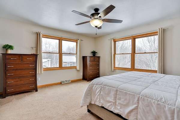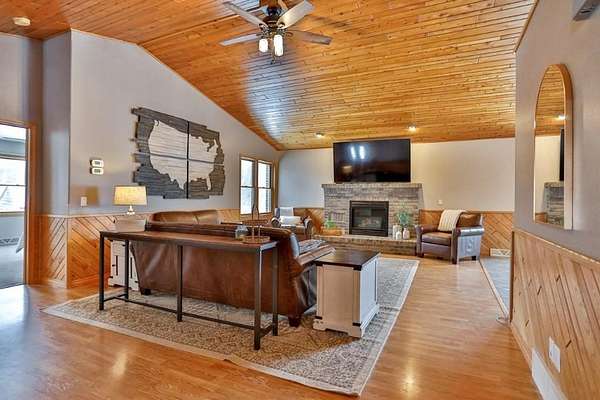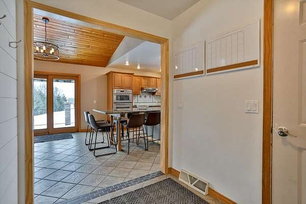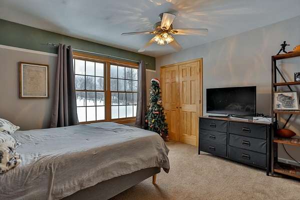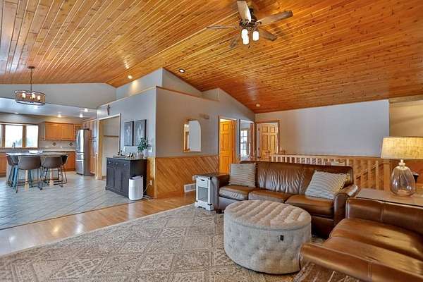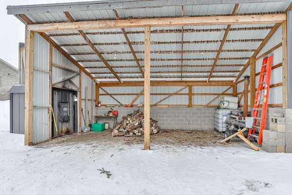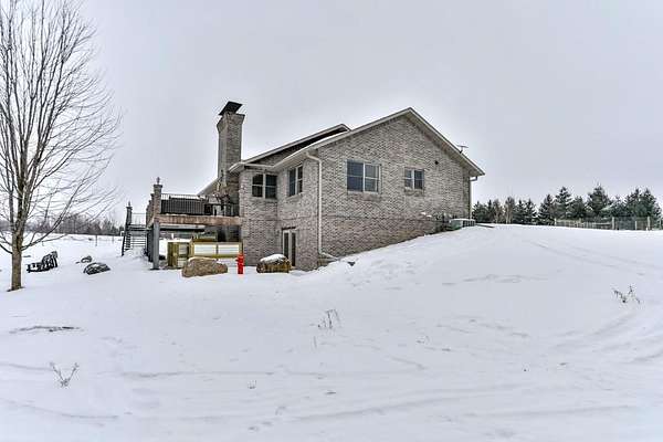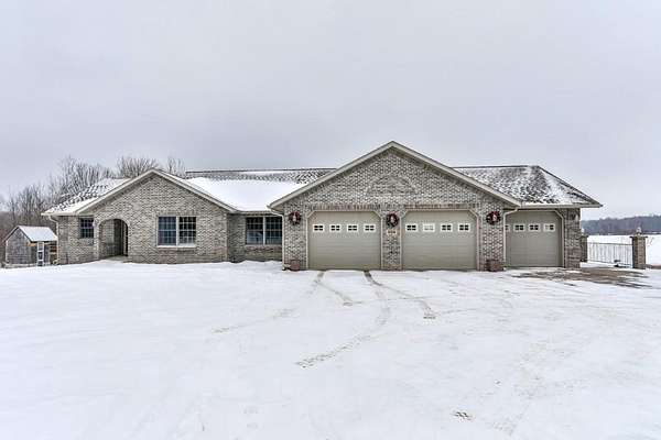 Quality-built, full brick, single-story home seated on 16.40 acres in Athens. Featuring just over 3,000 sq ft, with a walk-out basement and an oversized 3-car attached garage, plus a massive workshop located beneath the attached garage (spancrete construction and an overhead exterior door provides easy storage access). The basement, basement workshop, and attached garage all feature in-floor heat powered by an outdoor wood boiler with an accompanying wood shed. The system also includes a heat exchanger tied into the furnace for added efficiency. Exceptional outdoor living spaces include an upper-level full concrete wraparound patio and a lower patio, both offering stunning views of the pond and surrounding countryside. An outdoor wood-burning fireplace--frequently used and loved by the owners--adds to the entertaining appeal. The property features two ponds ideal for swimming and recreation. The back pond reaches approximately 14-feet deep, while the upper pond is about 5-feet deep. Both are stocked with jumbo perch, smallmouth bass, bluegill, and more, with routine monthly treatments by the owner.