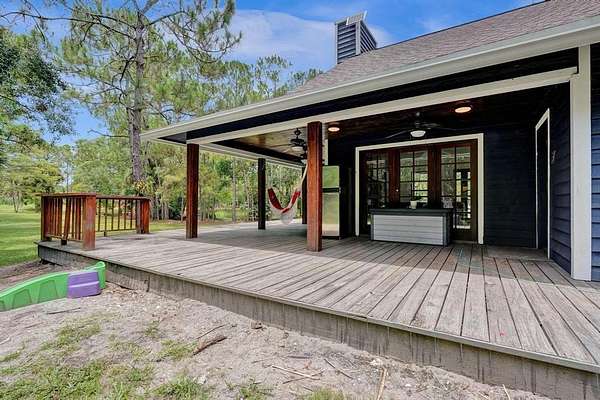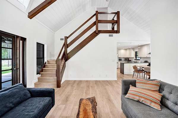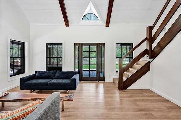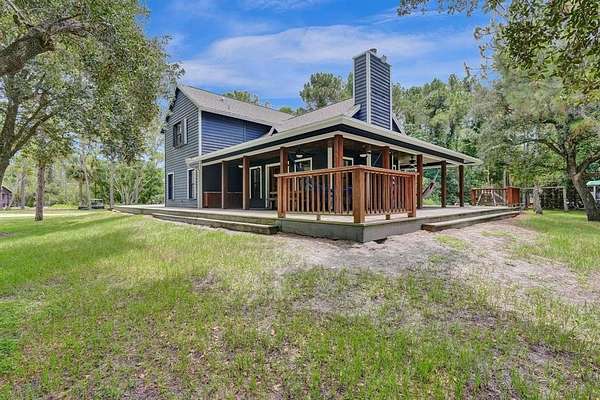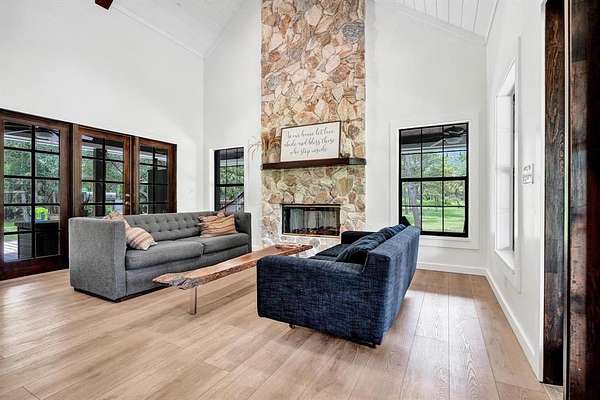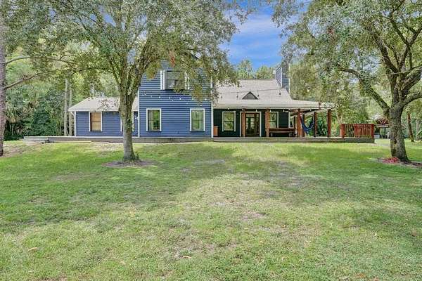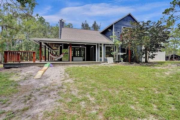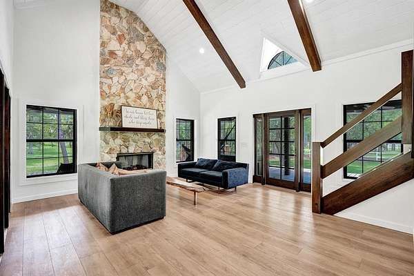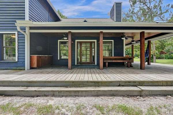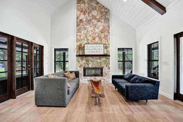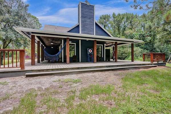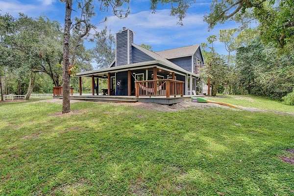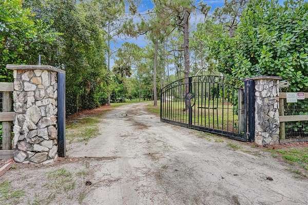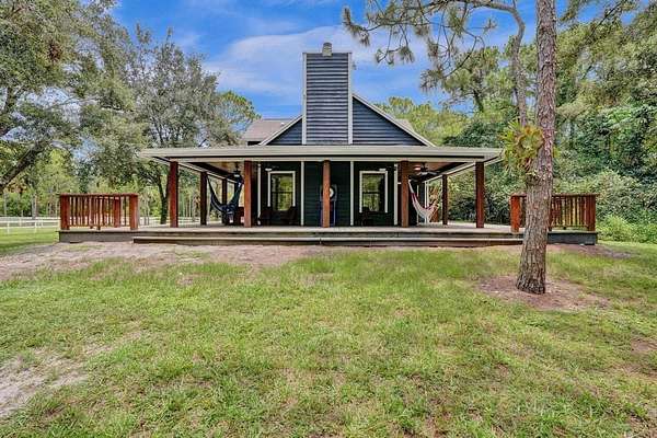 Majestic 10.5 acres offers rare opportunity w/no HOA , Direct access to 30 miles of equestrian and hiking trails, Impeccable 3 bedroom split plan with all new gourmet kitchen,soaring two story ceilings, french doors, fireplace, new contemporary primary bath, luxury vinyl flooring, updated 2ndary baths,wood beam ceilings, breakfast bay window. A true must-see for country living close to city. Surrounding the pond is a custom covered Pavilion with bathroom and pizza oven. The property also boasts a workshop with bath,storage garage, chicken coop, exotic fruit trees, bridge to meditation island,gazebo, fire pit, zip line, and electric with pad for another home. A unique and beautiful place to live.