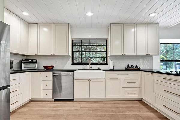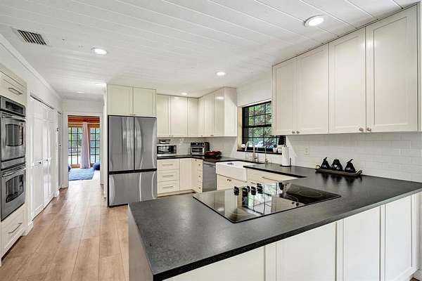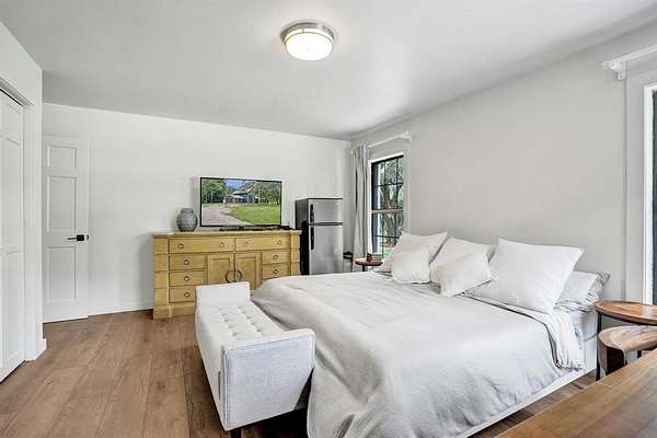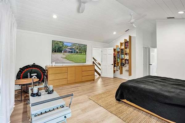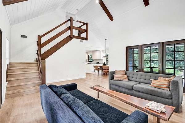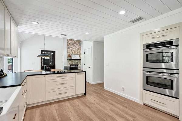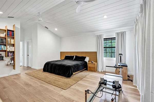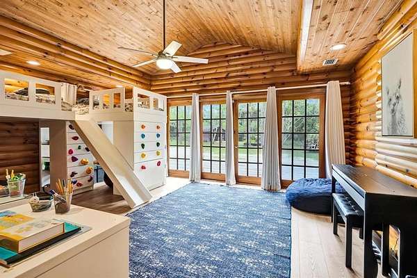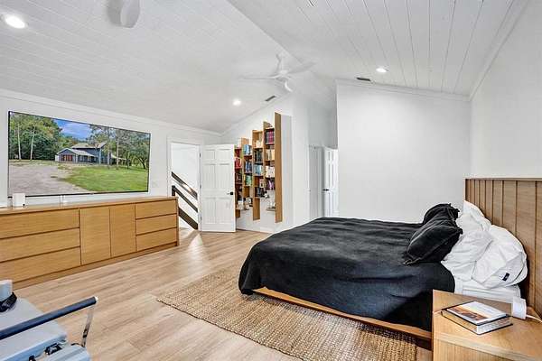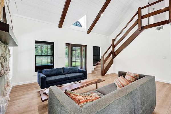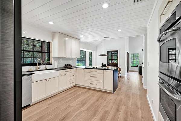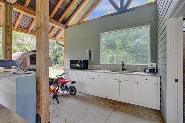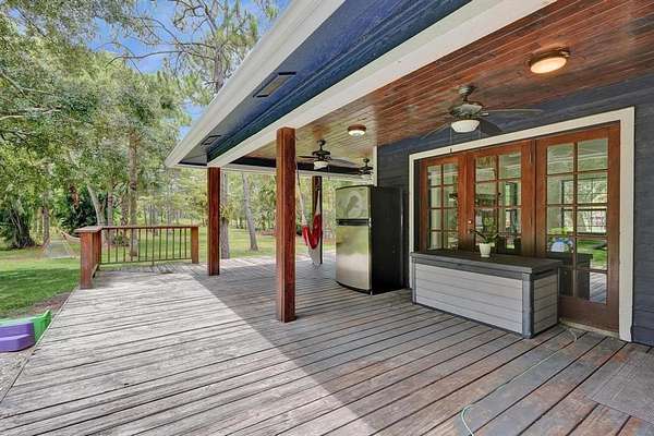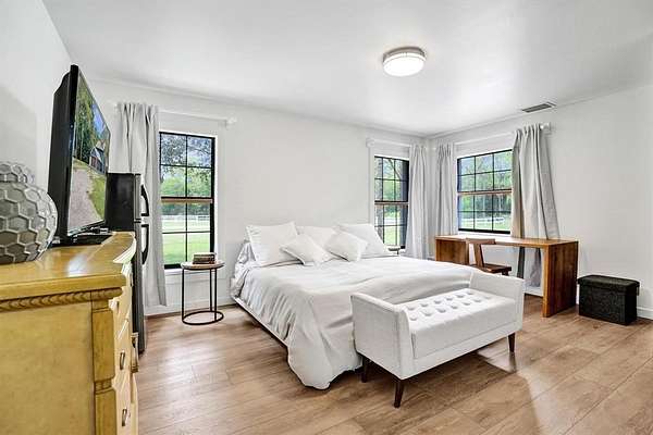 Majestic 10.5 acres offers rare opportunity w/no HOA , Direct access to 30 miles of equestrian and hiking trails, Impeccable 3 bedroom split plan with all new gourmet kitchen,soaring two story ceilings, french doors, fireplace, new contemporary primary bath, luxury vinyl flooring, updated 2ndary baths,wood beam ceilings, breakfast bay window. A true must-see for country living close to city. Surrounding the pond is a custom covered Pavilion with bathroom and pizza oven. The property also boasts a workshop with bath,storage garage, chicken coop, exotic fruit trees, bridge to meditation island,gazebo, fire pit, zip line, and electric with pad for another home. A unique and beautiful place to live.