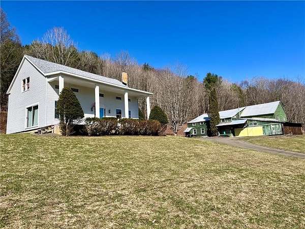 Serene Country Retreat; almost 80 acres, huge barn, move-in ready farmhouse, multiple building sites, and a 1/2 mile of Elk Creek water frontage! The charming 3-bedroom, 1-bath home boasts a stunning stone fireplace in the living room, a functional kitchen with a breakfast nook, and a dining room complete with a wood-burning stove and built-ins. The vaulted upstairs loft adds versatility, serving as an ideal space for an extra bedroom or home office. Natural woodwork, knotty pine, and wide plank flooring add to the cozy farmhouse feel. Step outside to a 300 sq. ft. stone porch, where you can relax and enjoy breathtaking valley views. Recent updates, including a brand-new septic tank, new roof, and newer furnace and hot water tank, ensure modern convenience in a charming rural setting. The property also includes a massive 5,000 sq. ft. mechanic shop/barn that is partially heated and equipped with 3-phase power. Formerly a machine shop, this versatile space is perfect for hobbies, farming, or business use. The land itself is a nature lover's dream, featuring scenic trails ideal for ATVs, hiking, or hunting, as well as 1/2 mile of direct creek access for fishing or relaxation. Extensive road frontage, including Camel Hill Rd which is town maintained and intersects the property, provide numerous options for additional building sites. Several areas have been cleared, with convenient access, privacy, and gorgeous mountain views. Future timber value, open space to pasture animals, and plenty of wildlife add to the properties potential. Conveniently located just minutes from Cooperstown and Oneonta and approximately one hour from Albany, this property offers the tranquility of the countryside with easy access to nearby towns and amenities. Properties of this size, with this potential, don't arrive often. Here's a chance to create your own Upstate Country Compound-schedule your showing today!