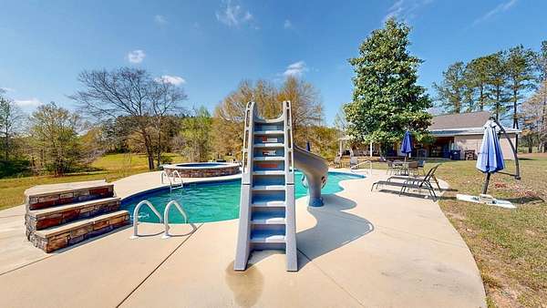 Tucked away on nearly 15 acres, this private retreat offers the perfect blend of open space and wooded beauty. The drive wraps around a peaceful pond, guiding you back to a home set comfortably off the road for added privacy. The property is well-equipped for both work and play, featuring a 30x40 shop with water and power, a pole barn with electricity, and a dedicated camper hookup complete with power, water, and septic ready for guests or extra flexibility. Inside, the home welcomes you with a cozy wood-burning fireplace and a spacious primary suite with a separate shower and soaking tub. Step out back to your own personal getaway to a covered porch overlooking a heated pool and hot tub, both added in 2021, perfect for relaxing or entertaining year-round. Whether you're looking for space to spread out, room to work, or a place to unwind, this property delivers it all with privacy to match.