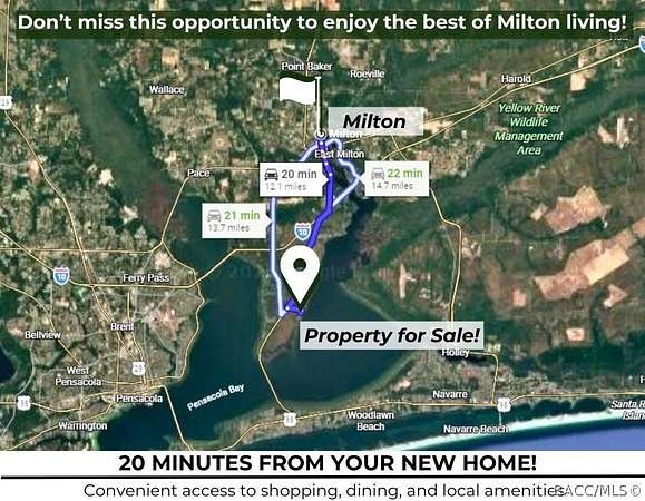 Build your home on this 0.56 acre vacant lot located at 1217 Cuddle Doon Ave in Milton, Santa Rosa County. Situated in a Cul de sac, this property offers a desirable residential setting with added privacy and limited traffic. The lot is served by public water and public sewer, a significant advantage compared to many properties in the area. Zoned R1 for single-family residential use, the property is conveniently located near the Dickerson City area of Milton and offers close proximity to Blackwater Bay with access to Pensacola Bay. A public boat ramp is located nearby, providing easy access for boating, fishing, and outdoor recreation. Less than an hour drive to the Gulf beaches. Located near major roadways, including US Highway 90 and Interstate 10, allowing easy access to Pensacola, Pace, and surrounding areas. Close to shopping, dining, schools, and everyday amenities while maintaining a residential neighborhood setting. This property presents a great opportunity for buyers looking to build, invest, or secure land in a growing area of Santa Rosa County. Qualified buyers may purchase this property with as little as 20% Down payment.