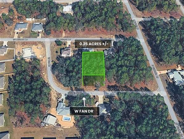 This lot is adjacent to a corner lot at 1263 W Fan Drive, offering the opportunity to purchase one or both parcels for additional space, flexibility, or investment potential. In the growing community of Citrus Springs, there is an excellent opportunity to build your dream home or hold it as a long-term investment. This property is Not in a flood zone, has No HOA, and is situated on a paved road with Citrus County Water Resources available, making it ideal for future development. New construction is active throughout the area, supporting strong growth and neighborhood appeal. Enjoy easy access to outdoor recreation, including the Withlacoochee and Rainbow Rivers for freshwater fishing, boating, and kayaking, as well as the Gulf waters of Crystal River for scalloping and swimming with manatees. Citrus Springs offers paved bike trails, tennis courts, golf courses, parks, and a community center, with the Withlacoochee State Trail less than 10 minutes away. Conveniently located near shopping, medical facilities, and the local library. Centrally positioned between Dunnellon, Inverness, Beverly Hills, Homosassa, and Crystal River. Approximately 15 minutes to the Suncoast Parkway, 20 minutes to Ocala and I-75, and within easy reach of Gainesville, Tampa, and Orlando. Qualified buyers may purchase with as little as 20% down payment.