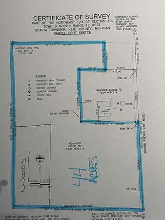 Discover 44 beautiful acres of farmland in Sparta Township, offering the perfect blend of rural tranquility and convenient location. With plenty of open ground and scenic countryside views, this property is ideal for farming, recreation, or building your farm homestead. Located just a short drive from the Village of Sparta and Grand Rapids, you can enjoy peaceful country living without sacrificing access to modern amenities. additional acreage available as well that includes barns and farmhouse. Natural gas is available in street. Call today to set up your private showing. Seller requesting Deadline for all offers due by 12pm on March 17, 2026. See MLS number 26009530, or 26009542, and 26009534 for full farm package of 53.45 acres.