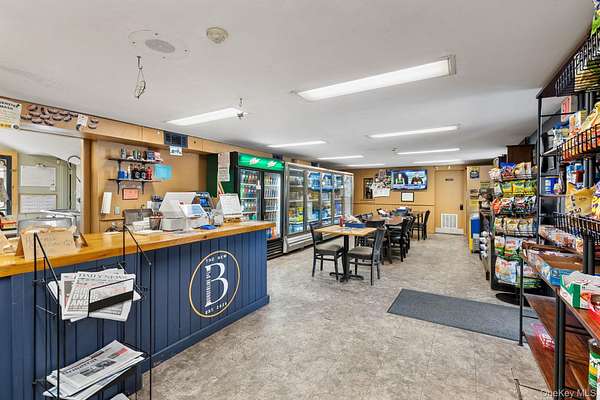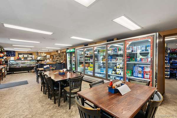 Here's your chance to own a thriving deli and convenience store that locals know and love, along with the building and an income-producing apartment - all in one unbeatable package! Perfectly positioned on heavily traveled Burlingham Road, less than one mile to Route 52 and under 10 minutes to the Hamlet of Pine Bush, this property offers excellent exposure and nonstop traffic. The building makes a statement with its covered porch, and clear roadside signage, while the inside is set up for success. The deli features a spacious customer area with multiple dining tables for eat-in service, a full line of glass-door coolers, display cases, and food prep stations, and ample shelving for grocery and convenience items. Behind the scenes, the property is equipped with a fully functional kitchen, complete with stainless steel prep tables, a gas range with overhead hood, deep stainless sinks, double refrigerators, and extensive shelving and storage for dry goods and supplies. This area is designed to handle daily food prep with ease, making it ideal for deli operations or expansion into catering and events. A walk-in cooler, freezers, and additional storage provide even more support, and there is also a dedicated office space for management, as well as a bathroom conveniently located off the storage area. Additionally featuring a whole building generator powered by propane, great for those unexpected power outages. Generator feeds the deli and upstairs apartment without any stress. Above the business, the one-bedroom apartment offers its own private exterior entrance and deck, along with hardwood floors and a kitchen/dining area combo, providing comfortable living quarters and steady rental income with room to increase. The property spans 1.8 acres, including a large paved lot with parking for 25+ vehicles, an open field, picnic/entertaining area perfect for events, and a separate one-car garage for storage. With its warm, welcoming atmosphere, proven community reputation, and multiple income streams, this is a turn-key investment package with endless potential for an owner-operator or investor ready to grow, expand, or simply enjoy the returns.